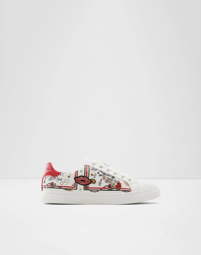 #Style Notes *To: Me, Love: Me. We adore these heartfelt sneakers with printed details and metal adornments. Treat yourself with an ultra lightweight sole for all-day wear. #Details *Colour: Other White *Heel Type: Flat Or No Heel #Materials *Main Material: Synthetic *Sole Material: Ethylene-Vinyl Acetate