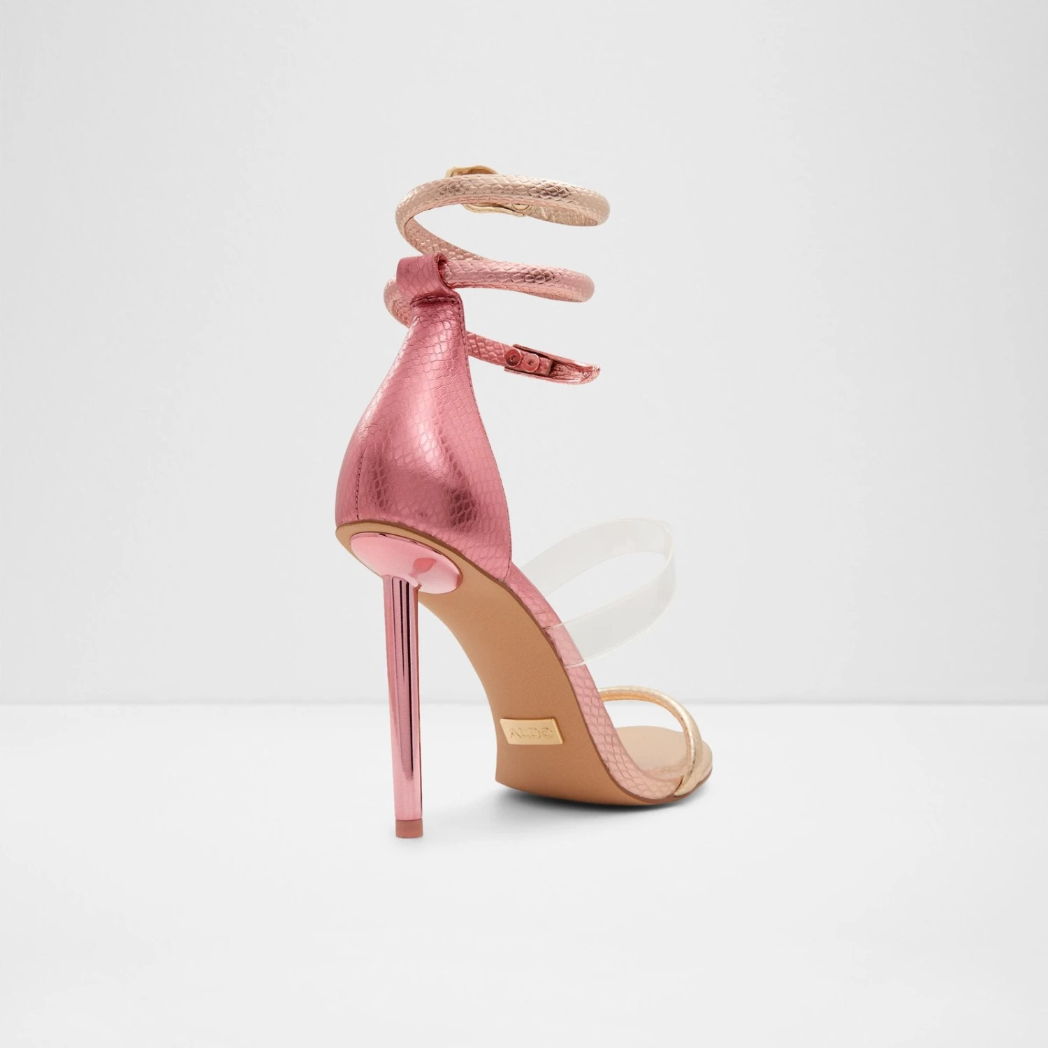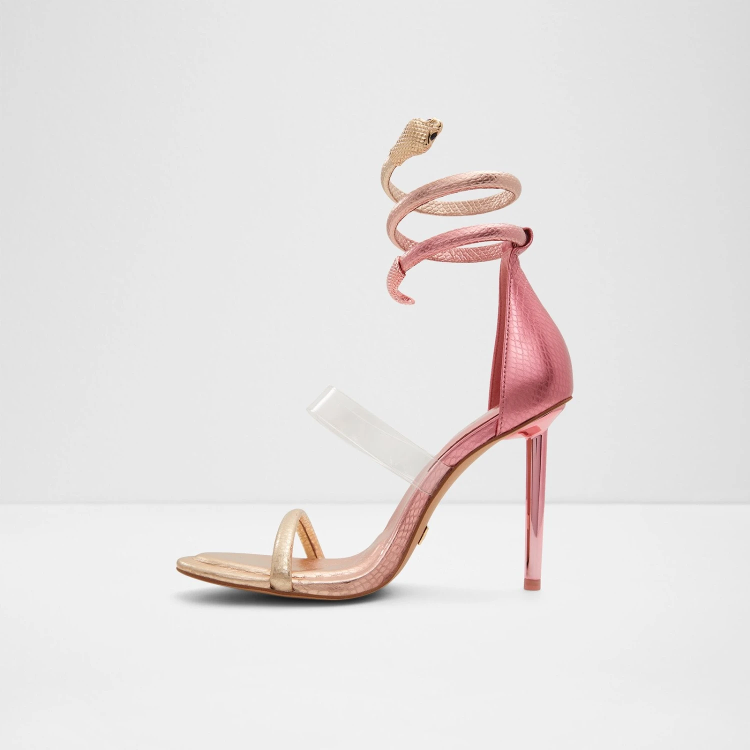 #Style notes *These stiletto heels with snake detailing are sure to turn heads at any event. #Details * Strappy heeled sandal * Open almond toe * Slip-on * Metal ornament * Colour Metallic Multi #Materials *Upper: Leather *Main: Mixed materials *Sole: Rubber #Measurements *Heel height: 10.2 cm