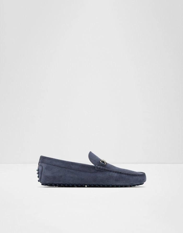 #Style notes *With a chic metal ornament and trendy square toe, these cool suede drivers grounded on pebbled outsoles have future-favorites written all over them. #Details * Driving shoe * Square toe * Slip on * Metal ornament * Colour Navy #Materials *Upper: Leather *Main: Suede *Sole: Rubber