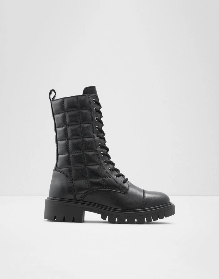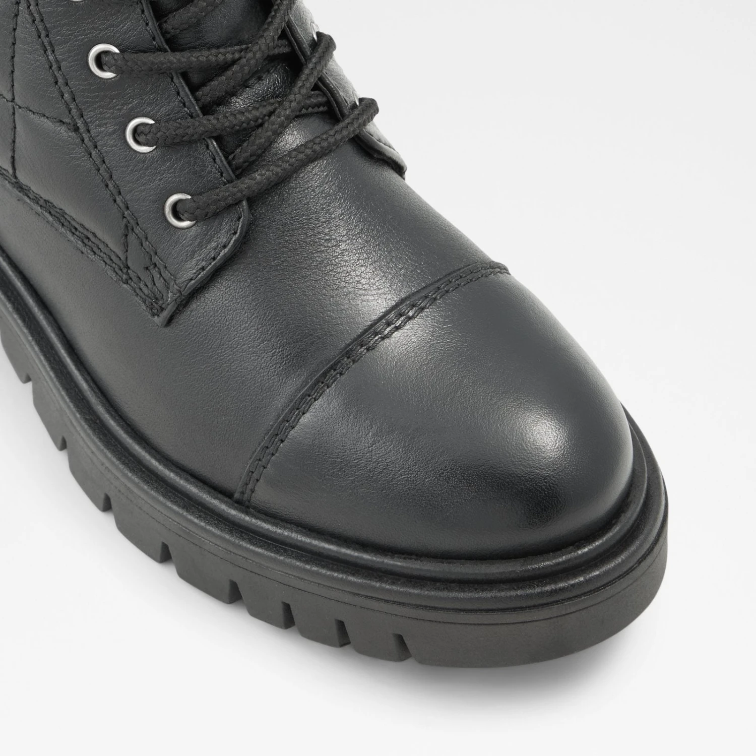 #Style notes *Grounded on treaded lug soles, these do-it-all lace-ups in smooth leather are ready to stomp on any terrain. Wear them with a moto jacket for extra tough girl vibes. #Details * Lace up boot * Round toe * Lug sole * Laces closure * Colour Black #Materials *Upper: Leather *Sole: Rubber #Measurements *Heel height: 3.0 cm *Shaft Height: 16.0 cm