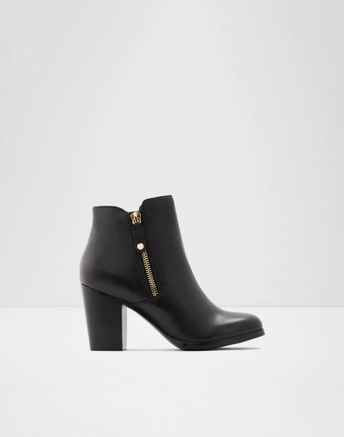 #Details * Ankle boot * Round toe * Block heel * Zipper closure * Colour Black #Materials *Upper: Leather *Lining: Textile *Sole: Rubber #Measurements *Heel height: 8.0 cm *Shaft Height: 9.5 cm