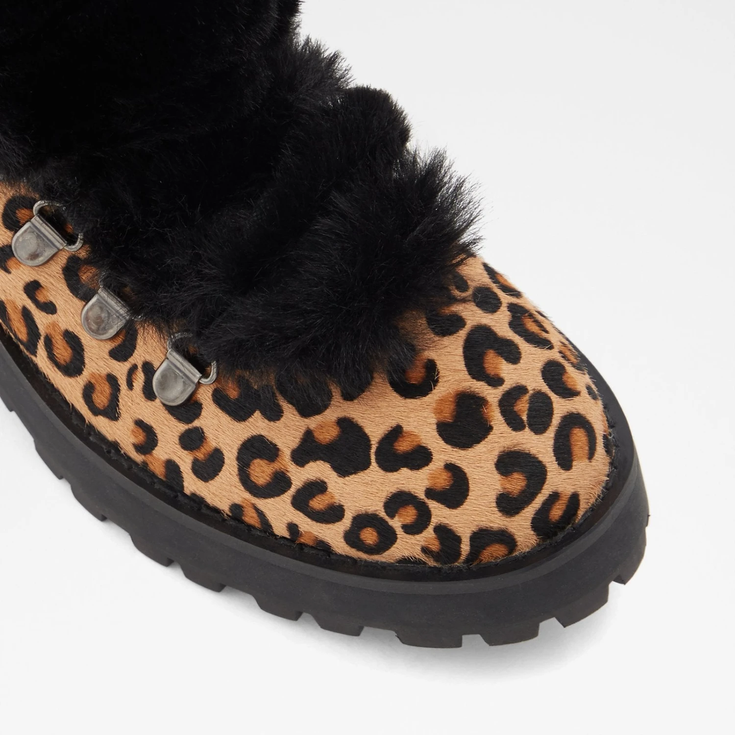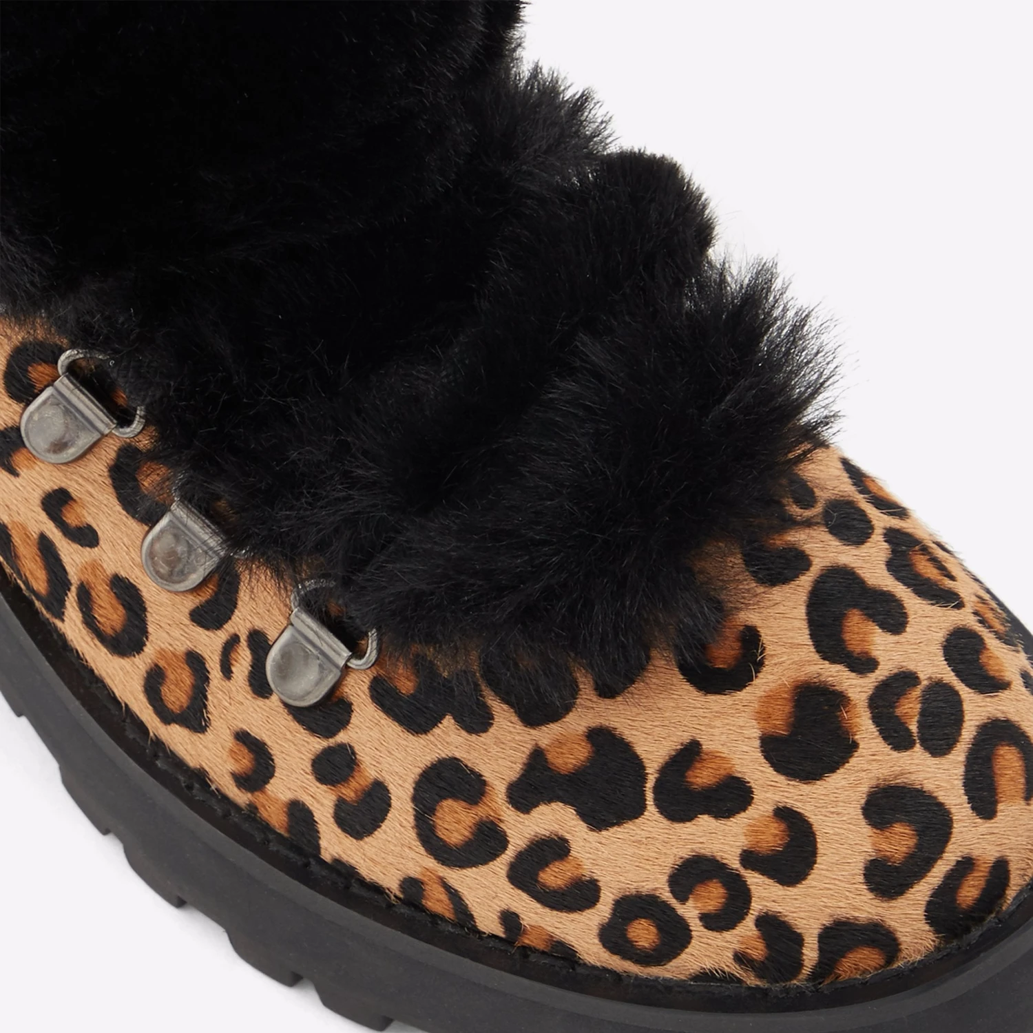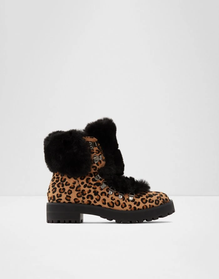 #Style notes *Hiking boots continue to be a key footwear trend – so if you’re looking for a contemporary spin, opt for these faux-fur trimmed beauties. Set on a textured lug sole, they’ll anchor your step, as well as your wardrobe. #Details * Ankle boot * Round toe * Lug sole * Laces closure * Faux-fur trim * Colour Brown Multi #Materials *Upper: Leather *Sole: Rubber #Measurements *Heel height: 4.0 cm *Shaft Height: 14.0 cm