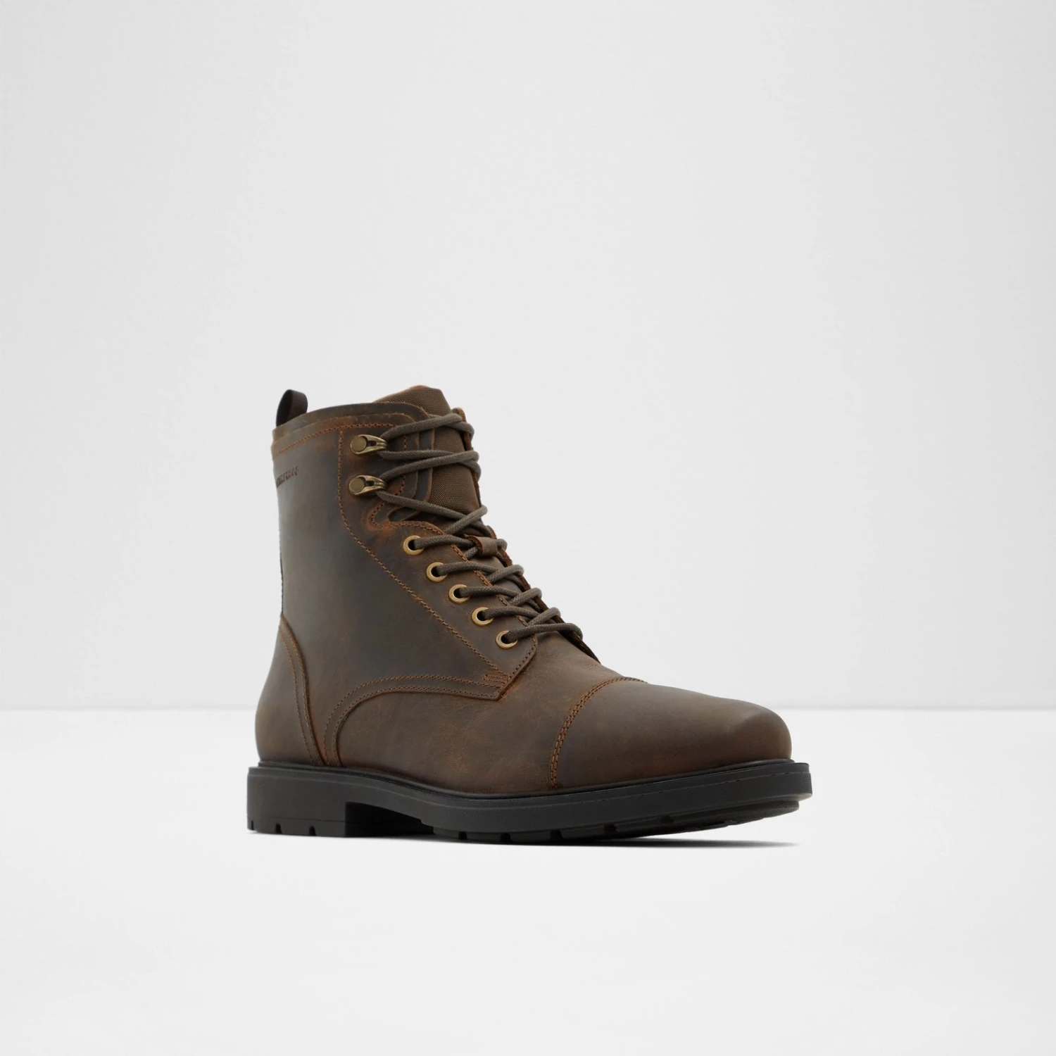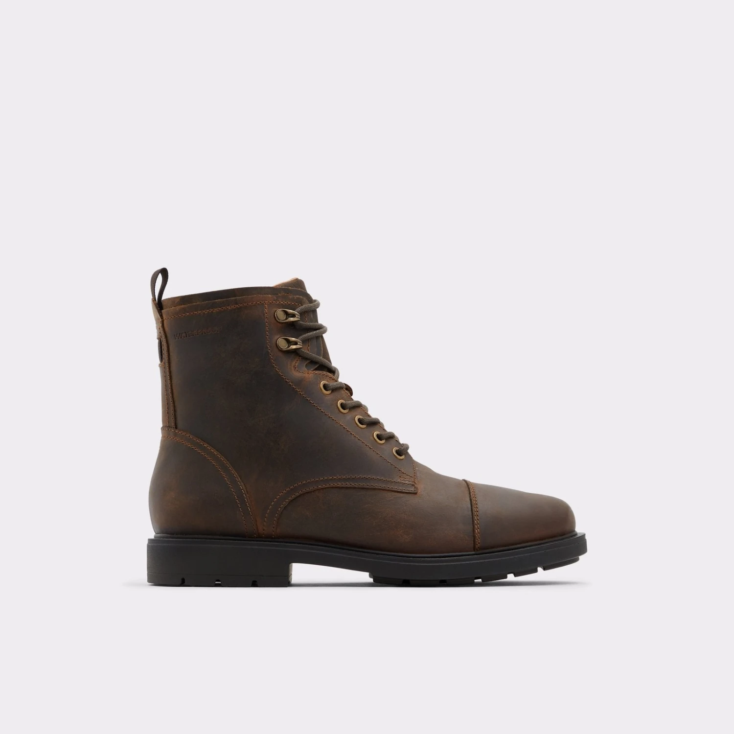 #Style notes *Fearless in freezing temperatures, these tough military-style ankle boots will combat winter ice, snow and rain. They’re winterproof so the wet stays out, and warmth stays in! They’re anchored by a deep tread tractor sole, that will steady your step on any terrain. #Details * Ankle boot * Round toe * Laces closure * Waterproof * Waterproof * Waterproof * Colour Dark Brown #Materials *Upper: Leather *Sole: Rubber #Measurements *Heel height: 2.5 cm *Shaft Height: 12.5 cm