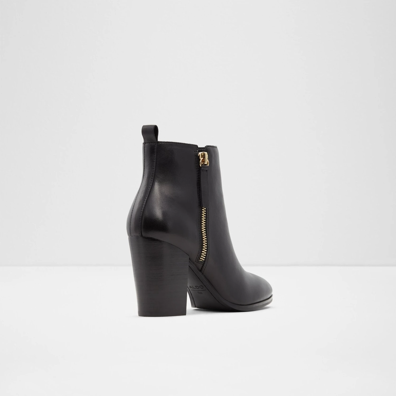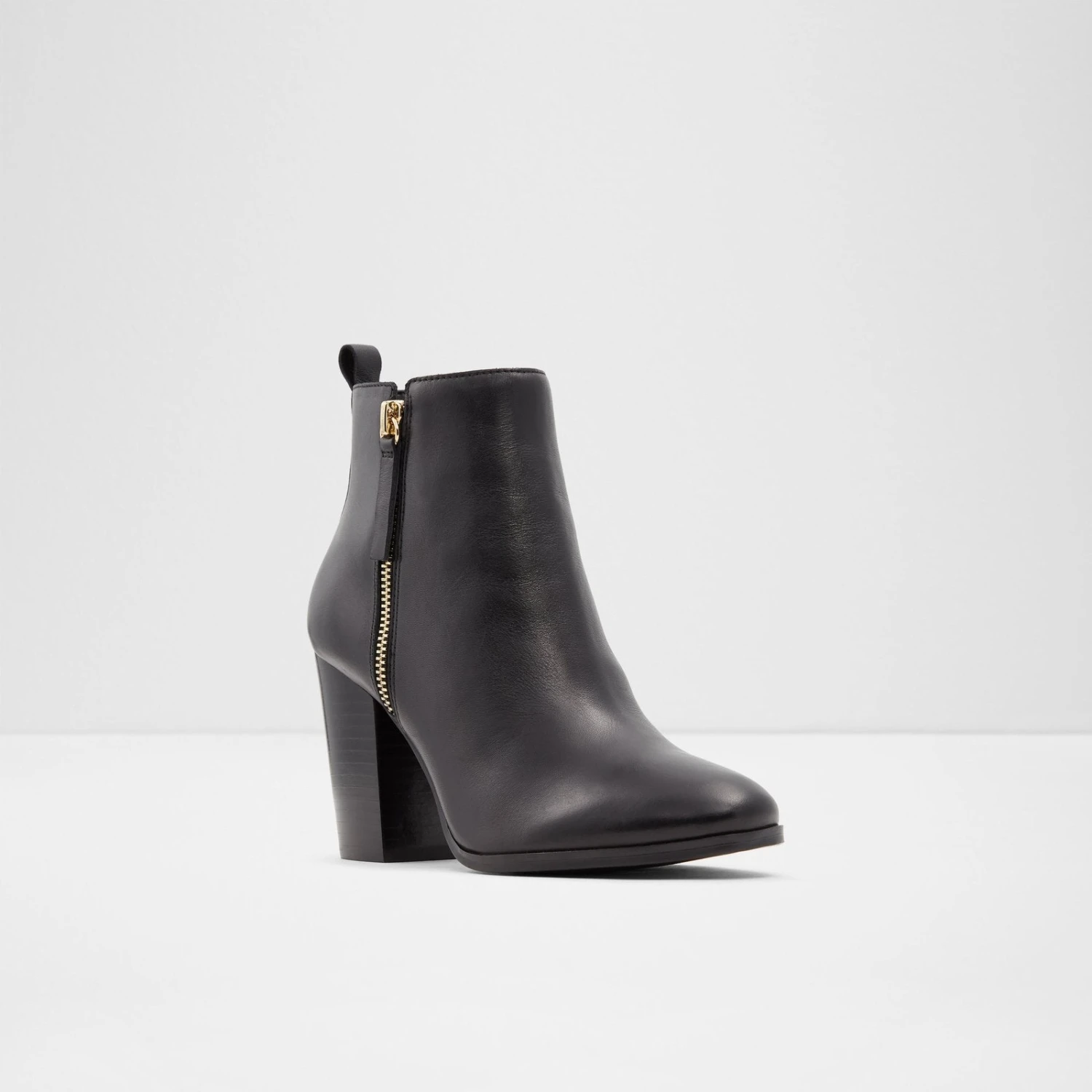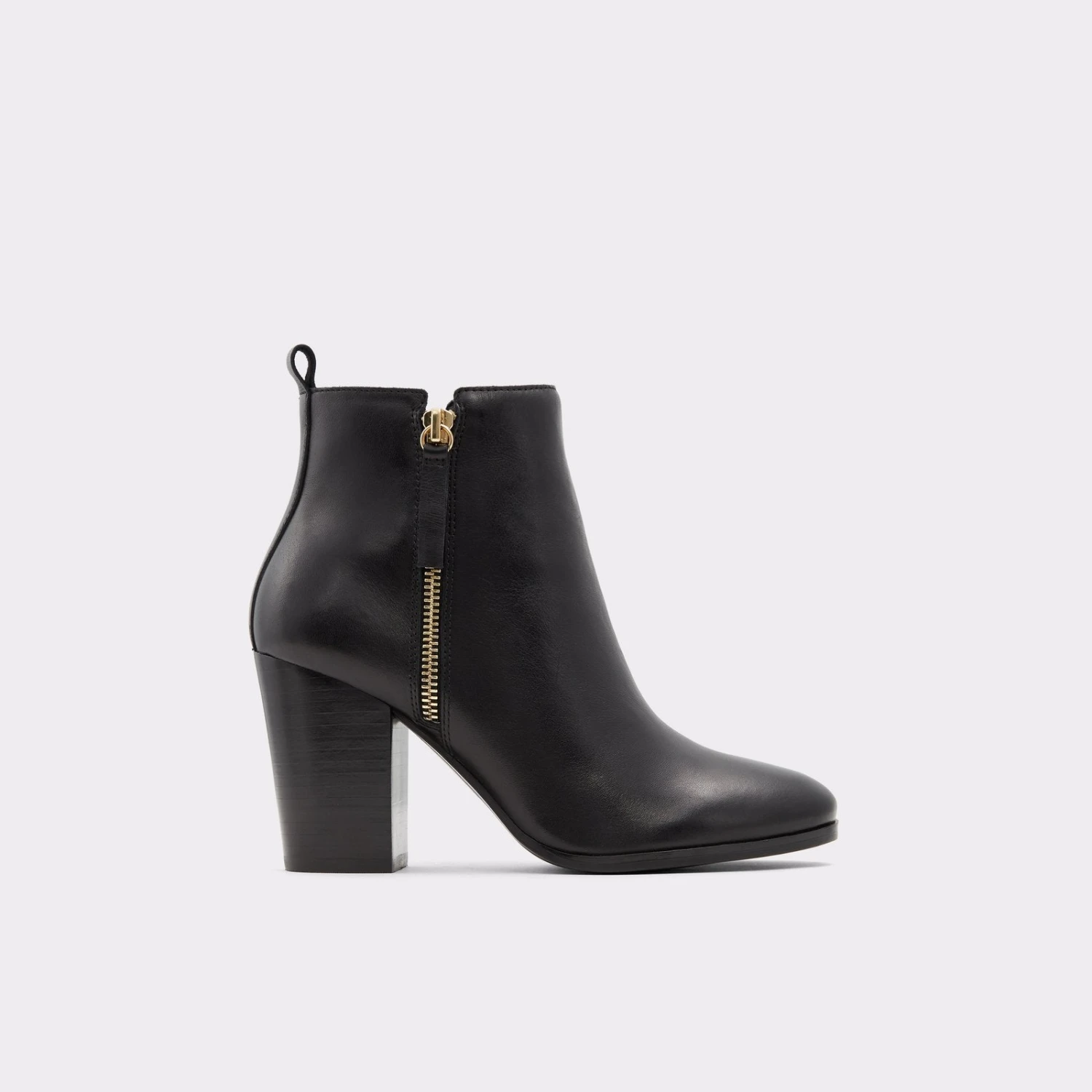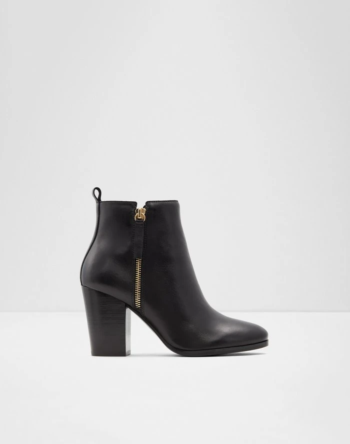 #Style notes *With this cute and stylish leather ankle boot, featuring a round toe, chunky block heel and side zipper closure, you’ve got yourself a fall look that’s on point. #Details * Ankle boot * Round toe * Block heel * Zipper closure * Zipper closure * Colour Black #Materials *Upper: Leather *Sole: Rubber #Measurements *Heel height: 9cm *Shaft Height: 12cm