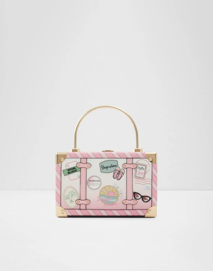 #Style Notes *Ladies travel box with non-removable patches and metal handle. #Details *Top Handle *Kiss Lock *Metal Handles *Removable Adjustable Crossbody Strap *Colour: Light Pink #Materials *Main: Synthetic #Measurements *Handle Drop Length: 4.00 In (10.16 Cm) *Strap Drop Length: 23.00 In (58.42 Cm) *Bag Dimensions: 12 Cm X 19 Cm X 6 Cm