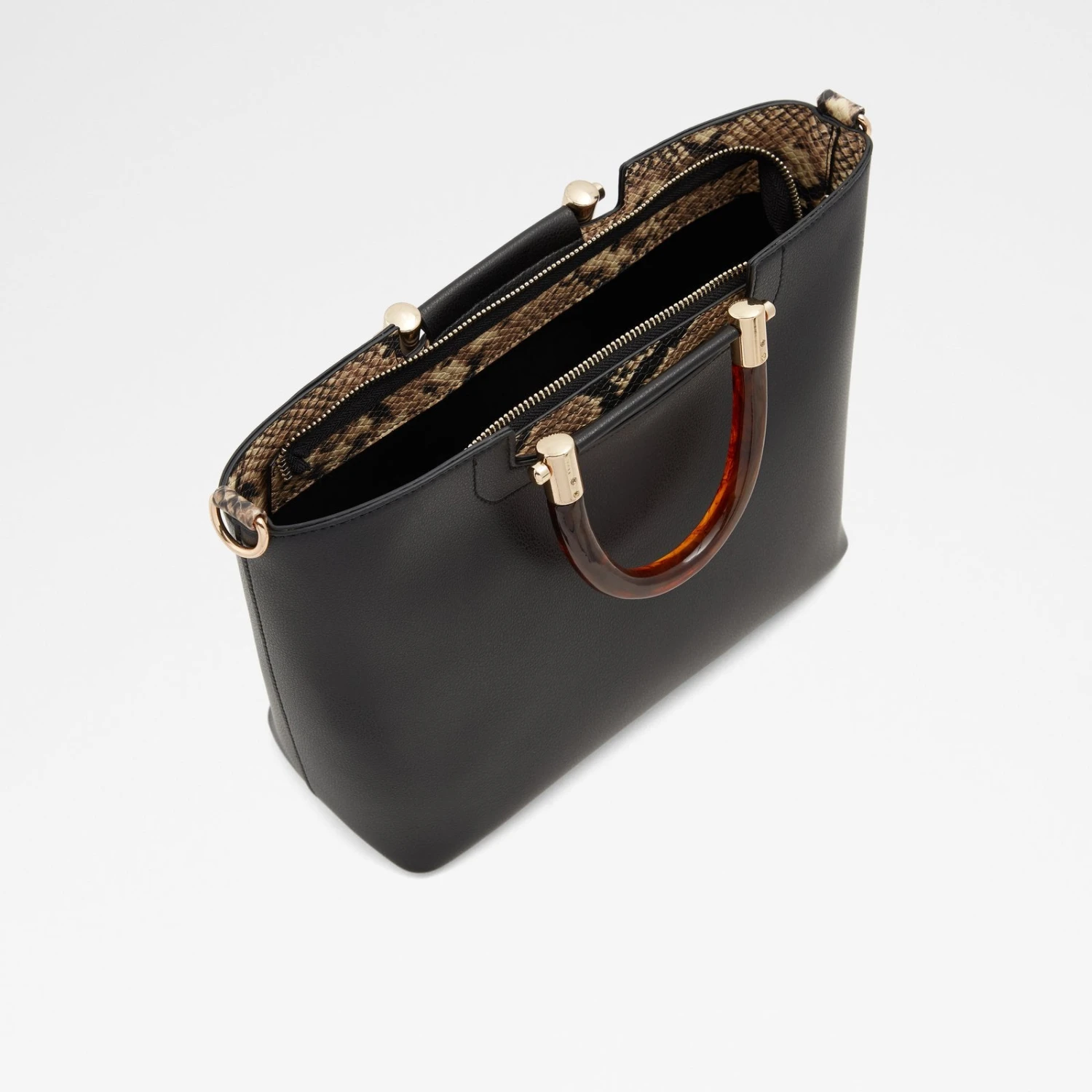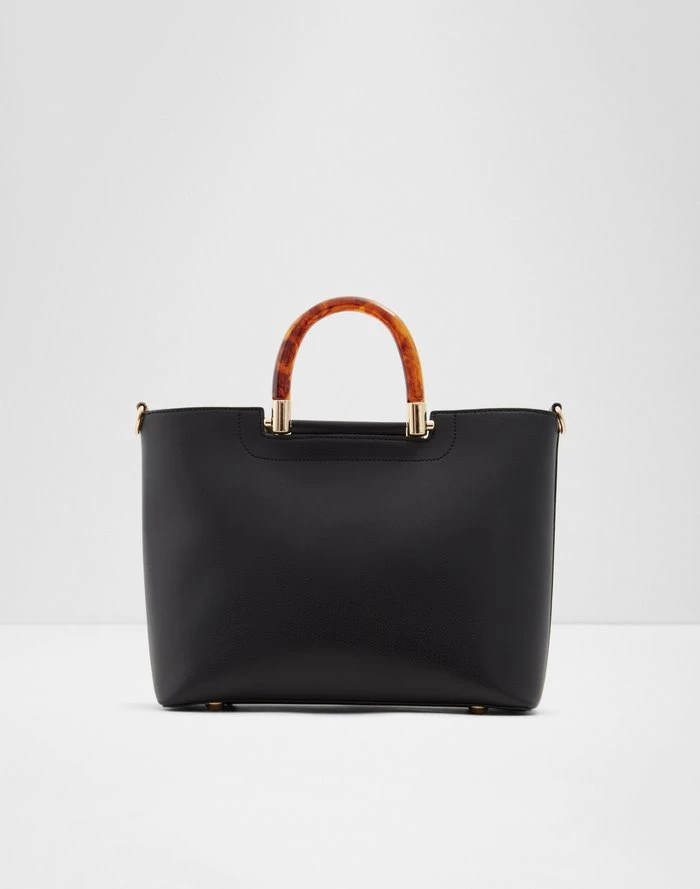 #Style notes *A spacious tote bag that can double down as a clean and flattering travel bag. Complete with a tortoiseshell handle that brings this silhouette to the modern handbag style playing field. Zip open, drop and go. #Details * Tote bag * Zipper closure * Decorative zipper * Interior compartment * Removable adjustable shoulder strap * Colour Black #Materials *Upper: Synthetic *Main: Synthetic #Measurements *Handle Drop Lenght: 10.0 cm *Strap Drop Length: 53.0 cm