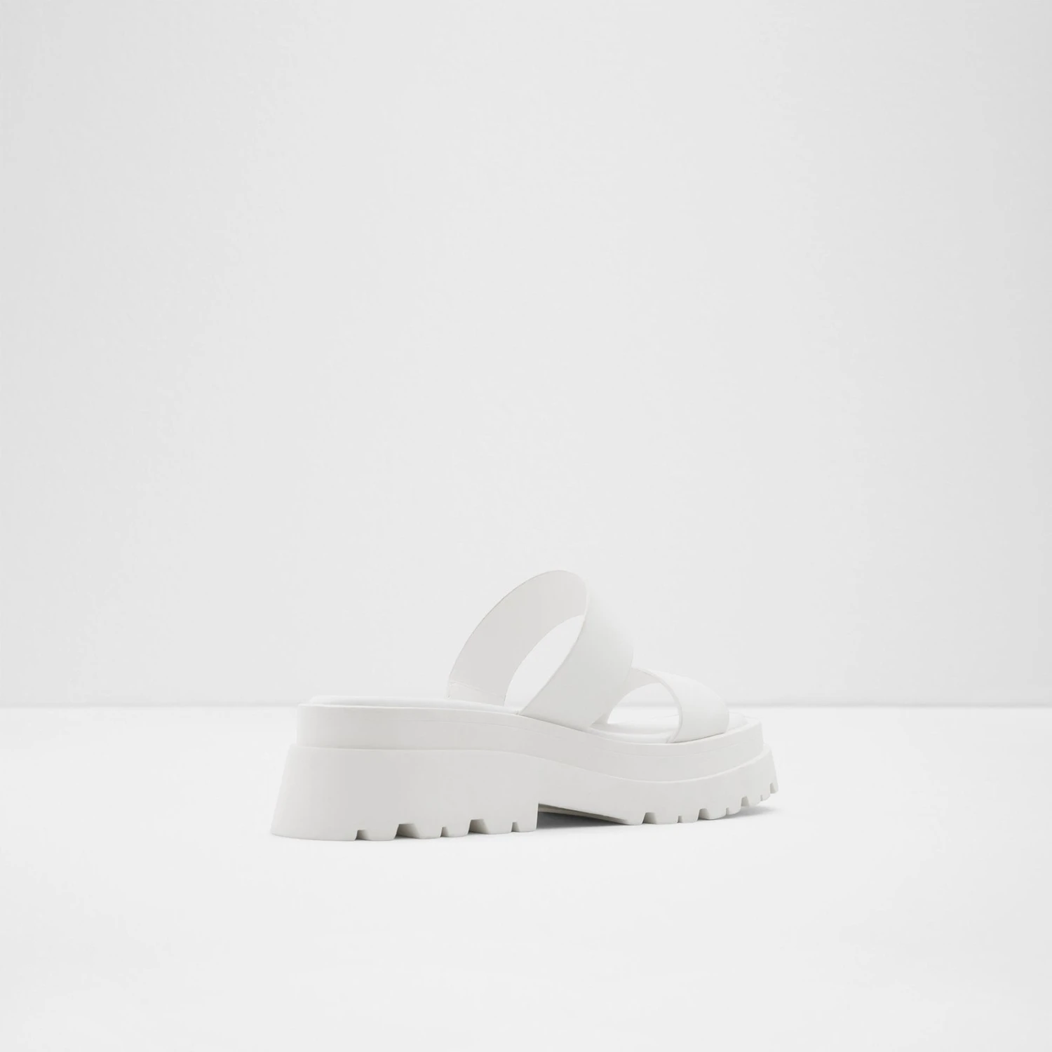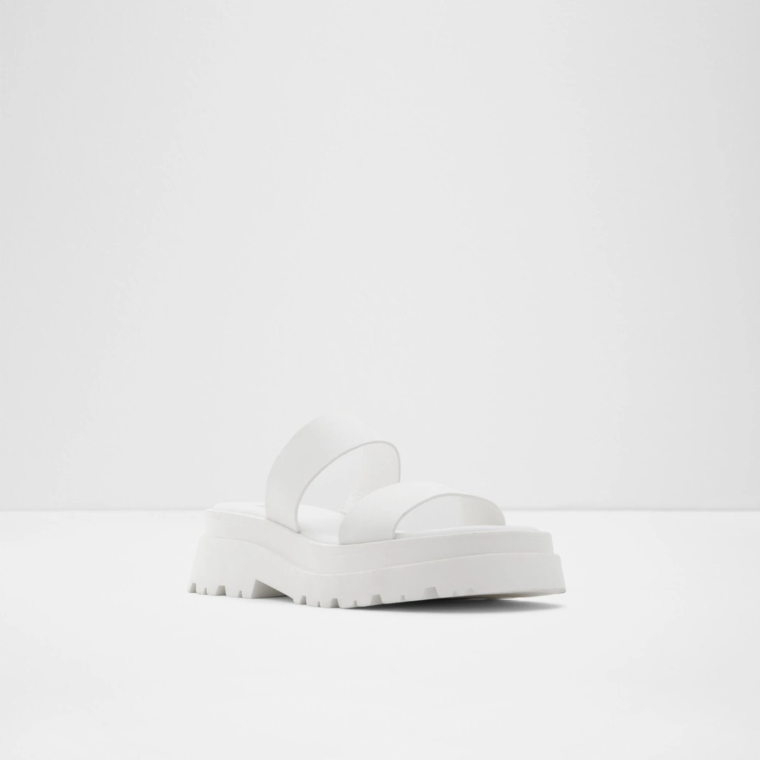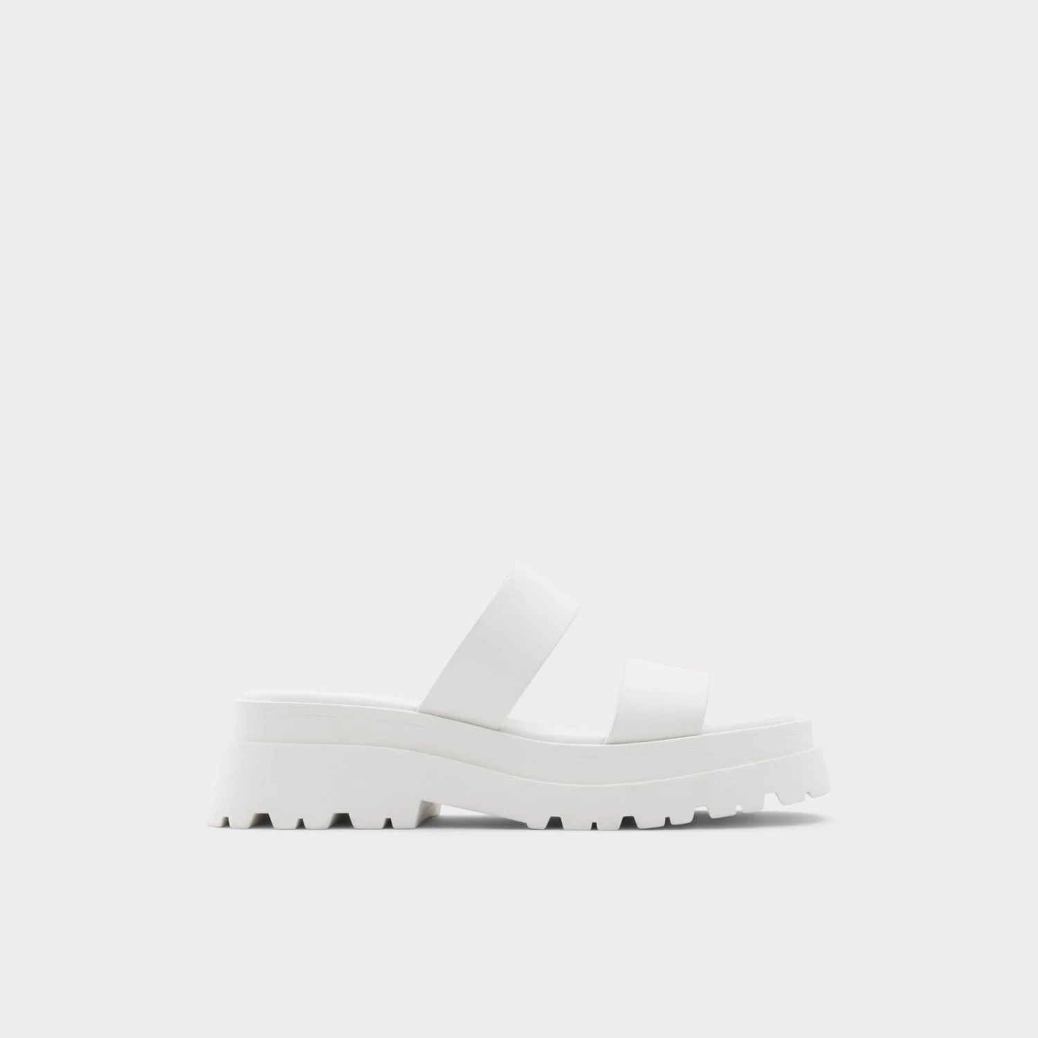 #Style Notes *Add some edge to a simple outfit with these easy to wear lightweight slides. Lug soles and thick straps will keep you grounded. Throw them on for all your coffee runs and errand days! #Details *Colour: White *Heel Height: 2.25 In (5.72 Cm) *Heel Type: Rubber/Lug Sole #Materials *Main Material: Synthetic *Sole Material: Thermo Plastic Rubber