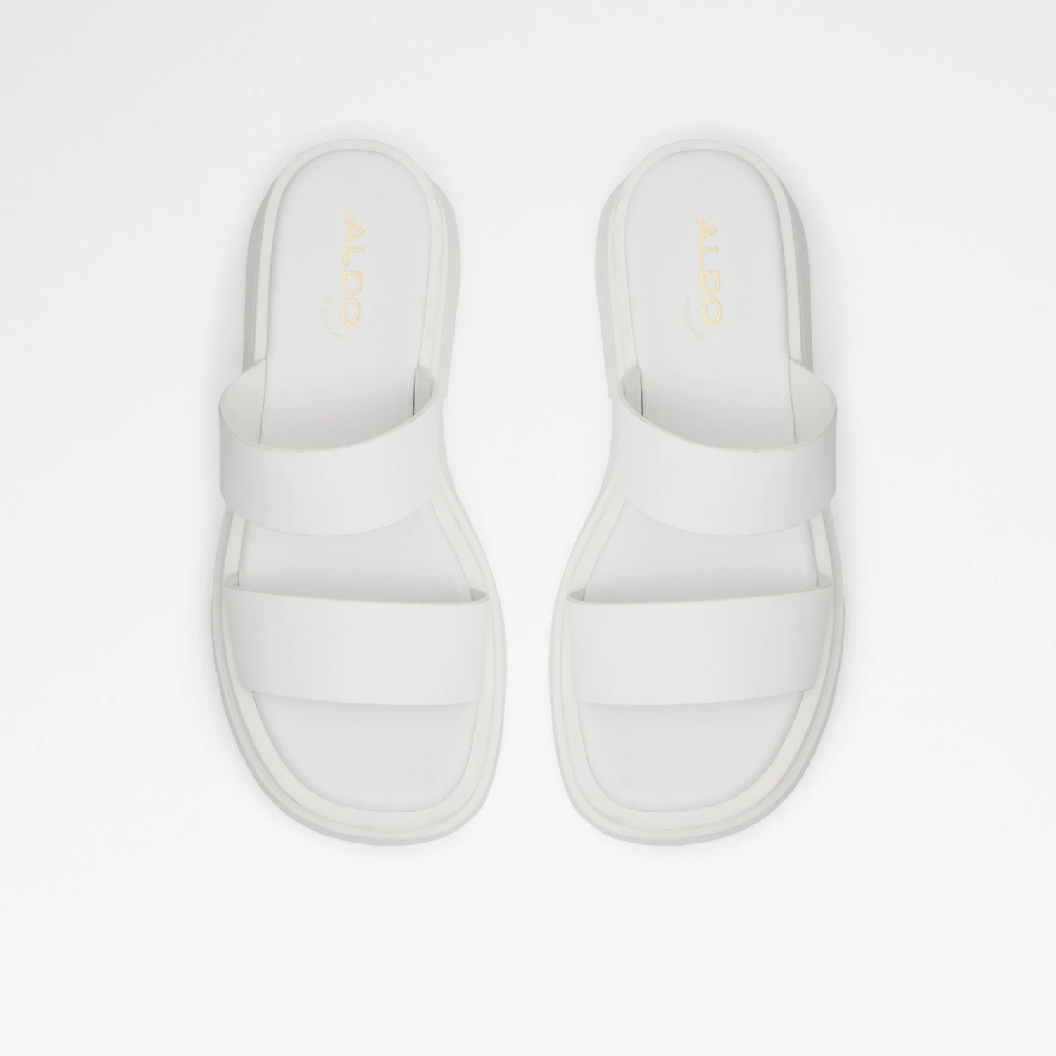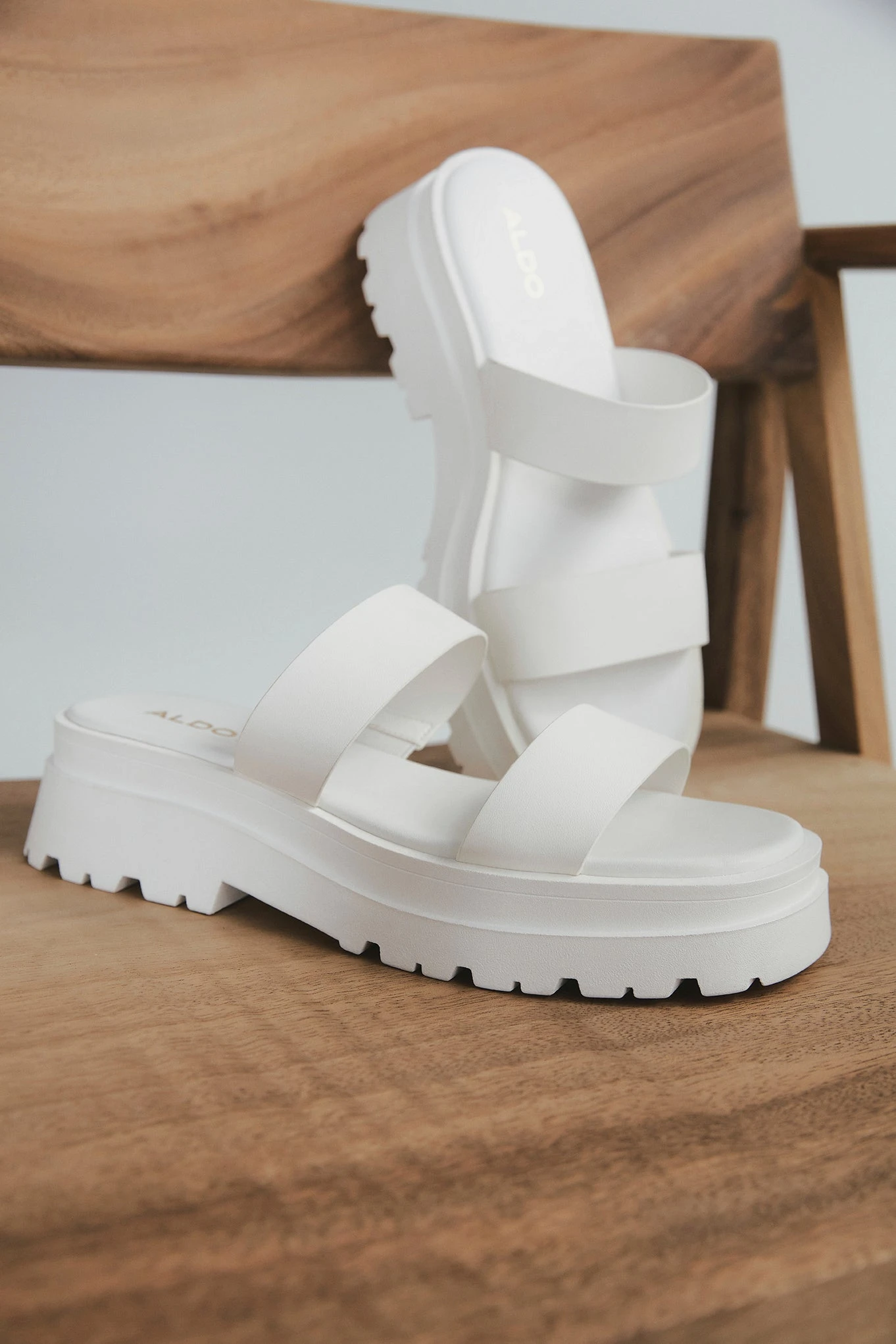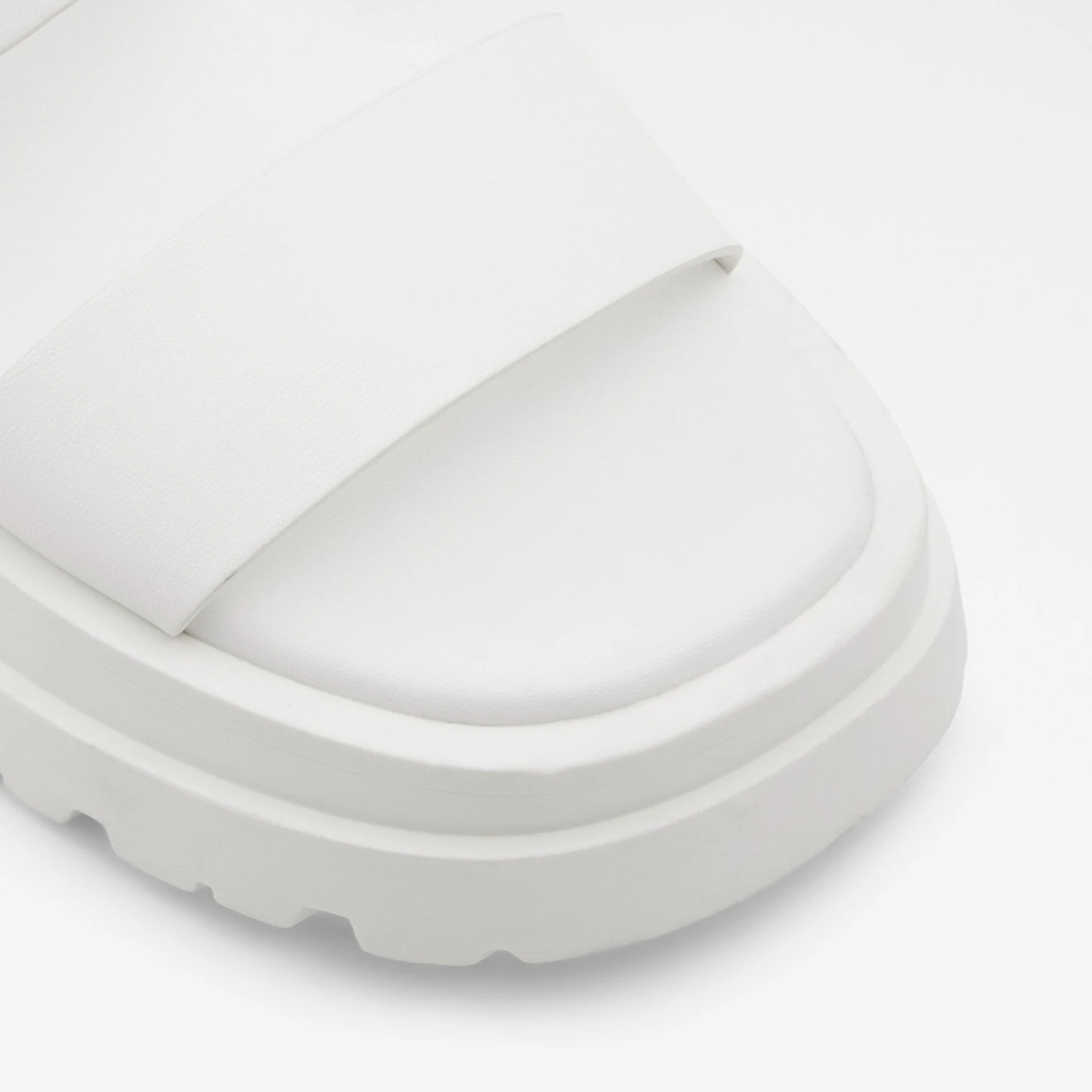#Style Notes *Add some edge to a simple outfit with these easy to wear lightweight slides. Lug soles and thick straps will keep you grounded. Throw them on for all your coffee runs and errand days! #Details *Colour: White *Heel Height: 2.25 In (5.72 Cm) *Heel Type: Rubber/Lug Sole #Materials *Main Material: Synthetic *Sole Material: Thermo Plastic Rubber