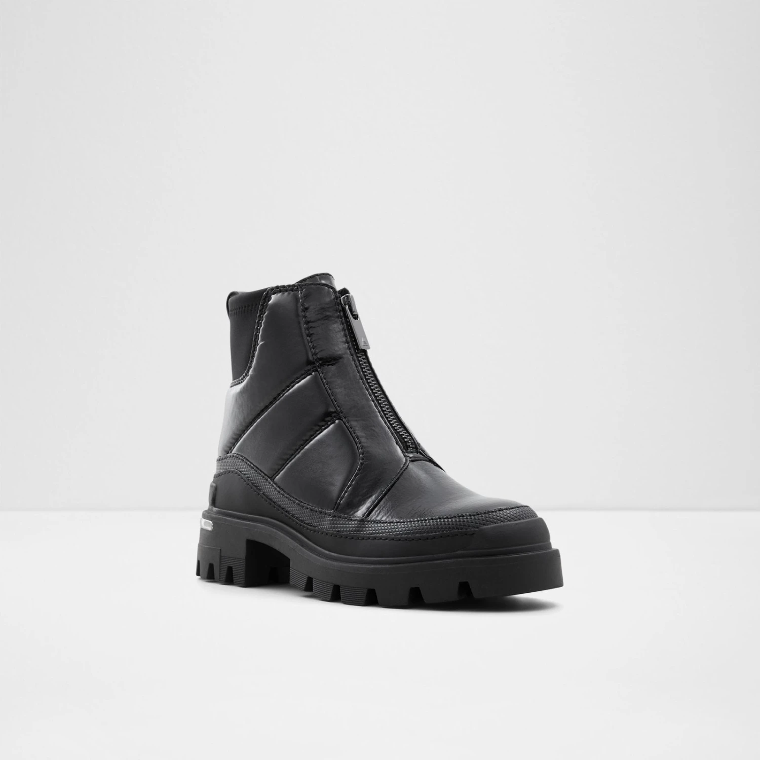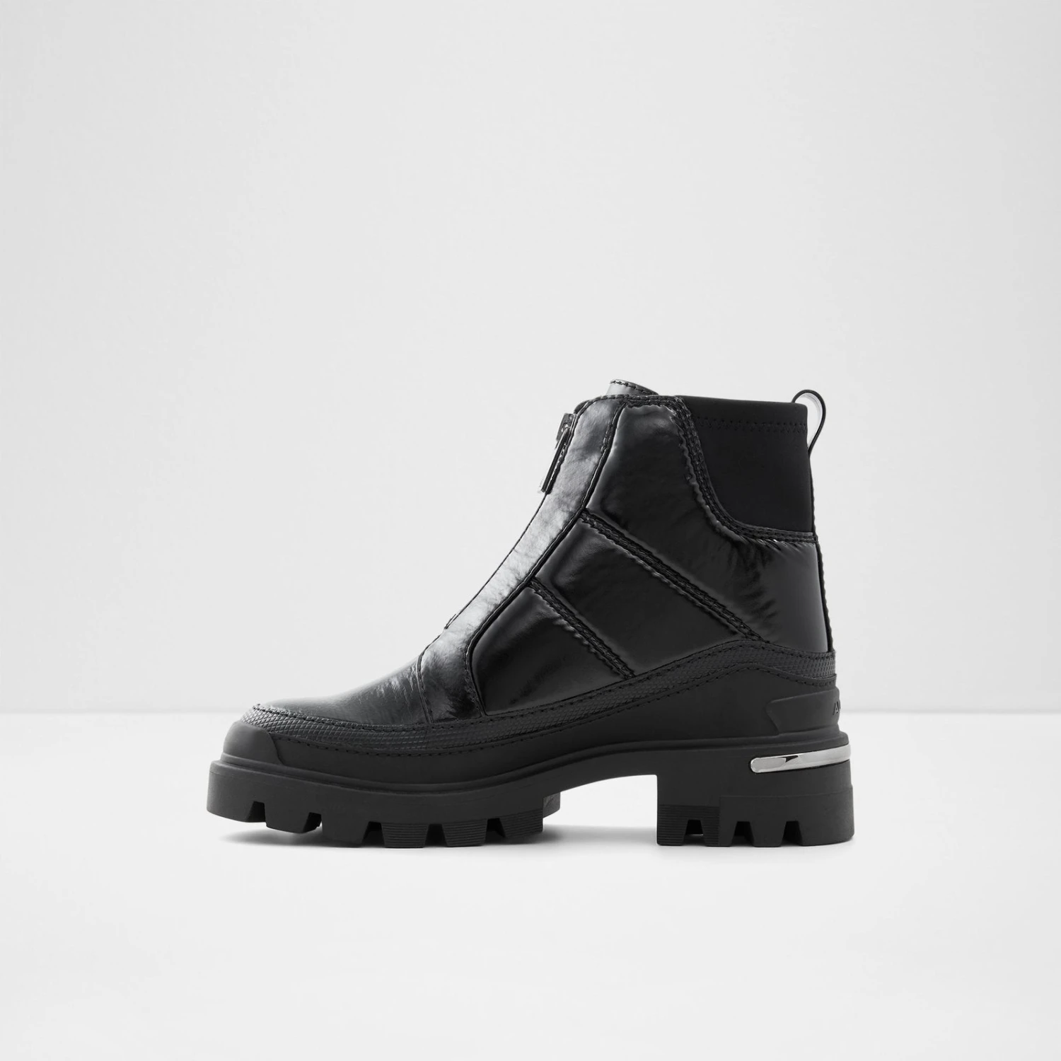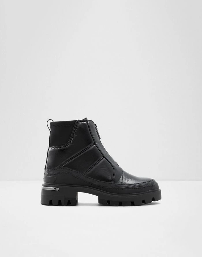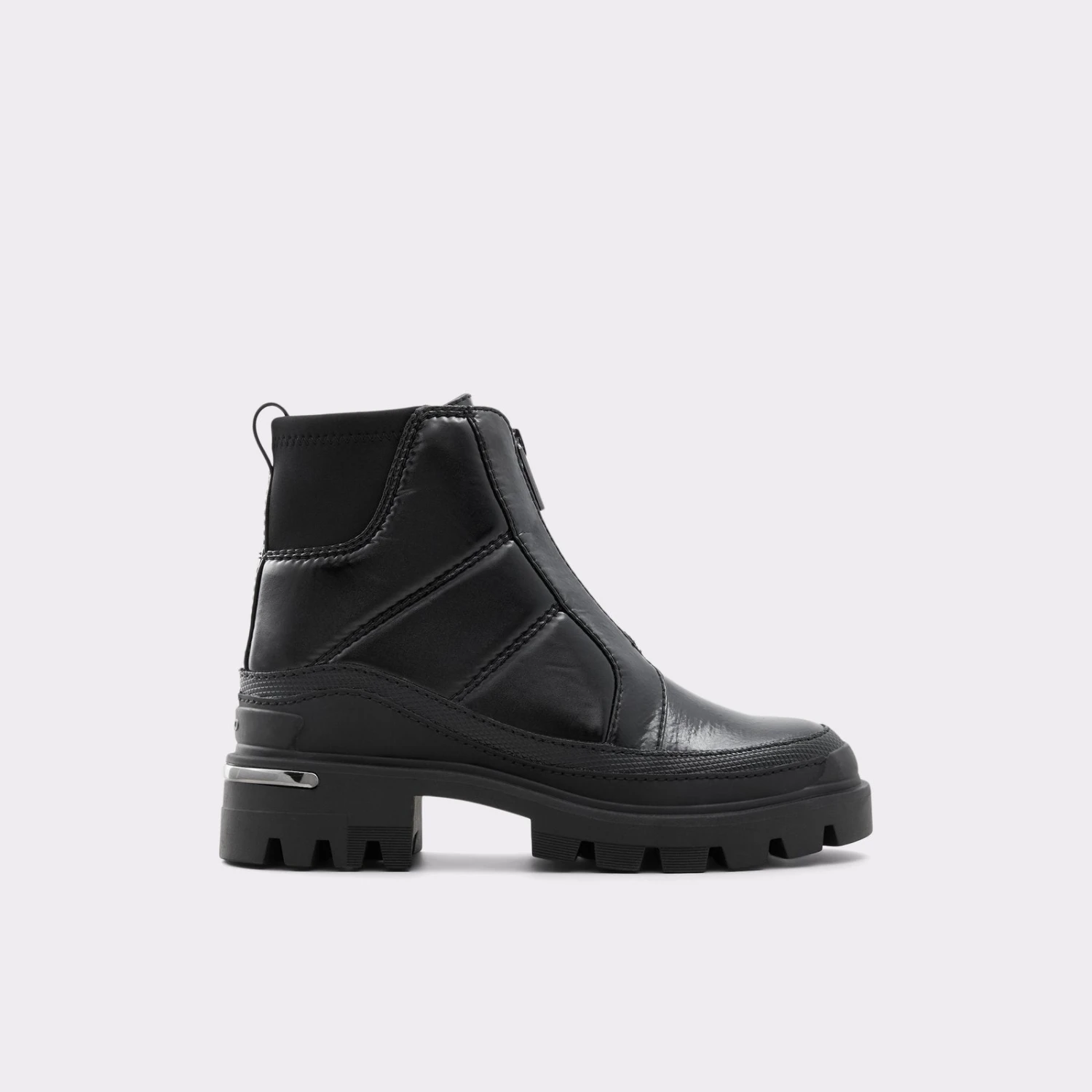 #Style notes * #Details * Hiking boot * Round toe * Lug sole * Zipper closure * Metal detail * Colour Black #Materials *Upper: Textile *Sole: Rubber #Measurements *Heel height: 1.5 cm *Shaft Height: 5.0 cm