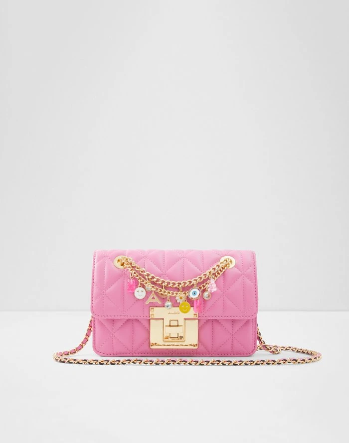 #Style Notes *Ladies medium size crossbody with non-removable chain and charms detailing, back slash pocket and interior zip pocket feature. #Details *Cross Body *Turn Lock *Turn Lock *Chain/Polyurethane Removable Strap *Colour: Pink #Materials *Main: Synthetic #Measurements *Strap Drop Length: 22.00 In (55.88 Cm) *Bag Dimensions: 16 Cm X 20 Cm X 10 Cm
