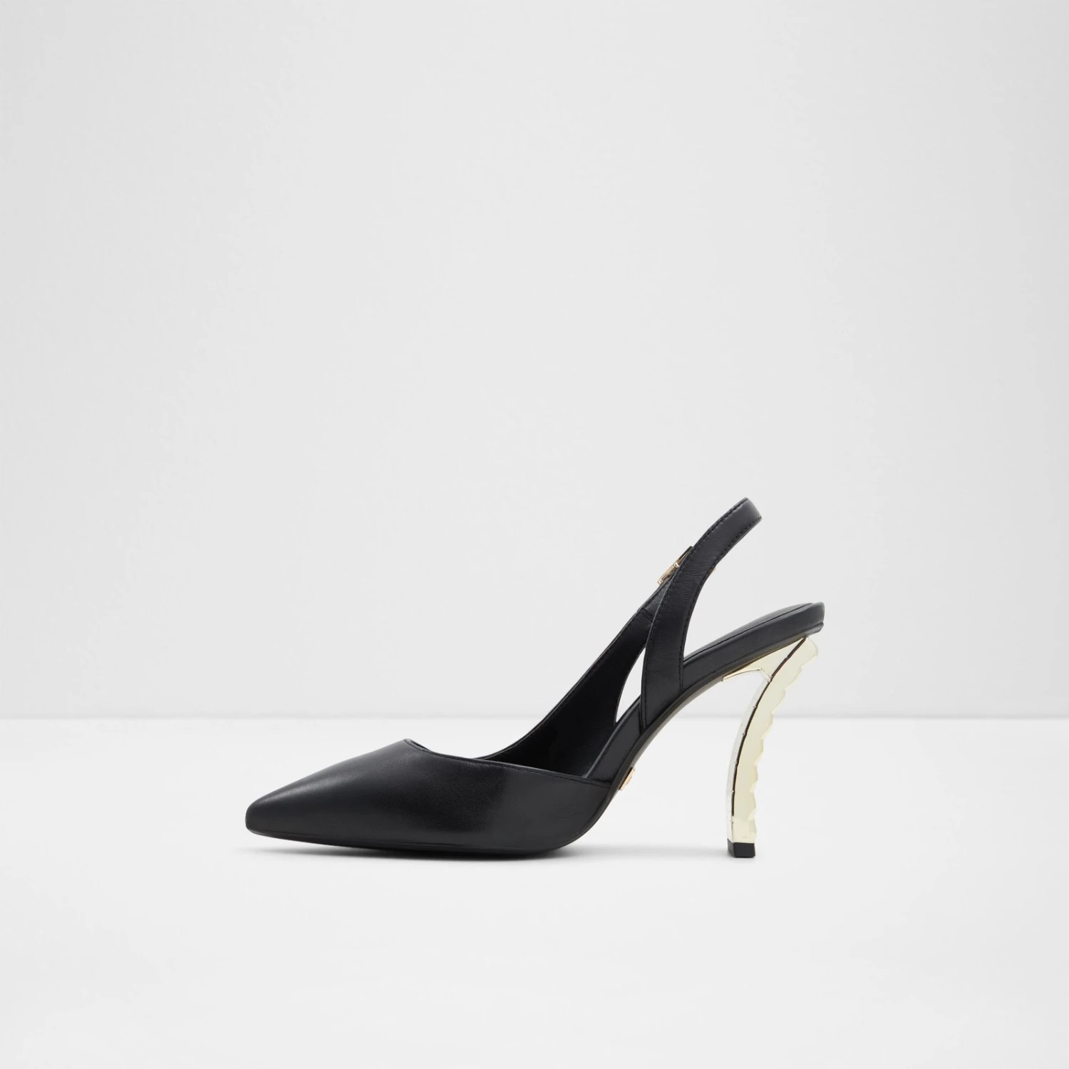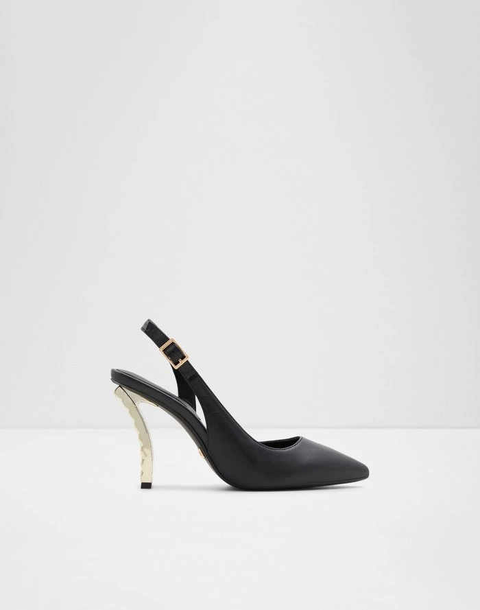 #Details *Statement heeel with a sleek silhouette is the perfect combination for your next event. Sling back high heel * Peep toe * Slip-on * Colour Black #Materials *Upper: Synthetic *Main: Mixed materials *Sole: Rubber #Measurements *Heel height: 3.75 cm