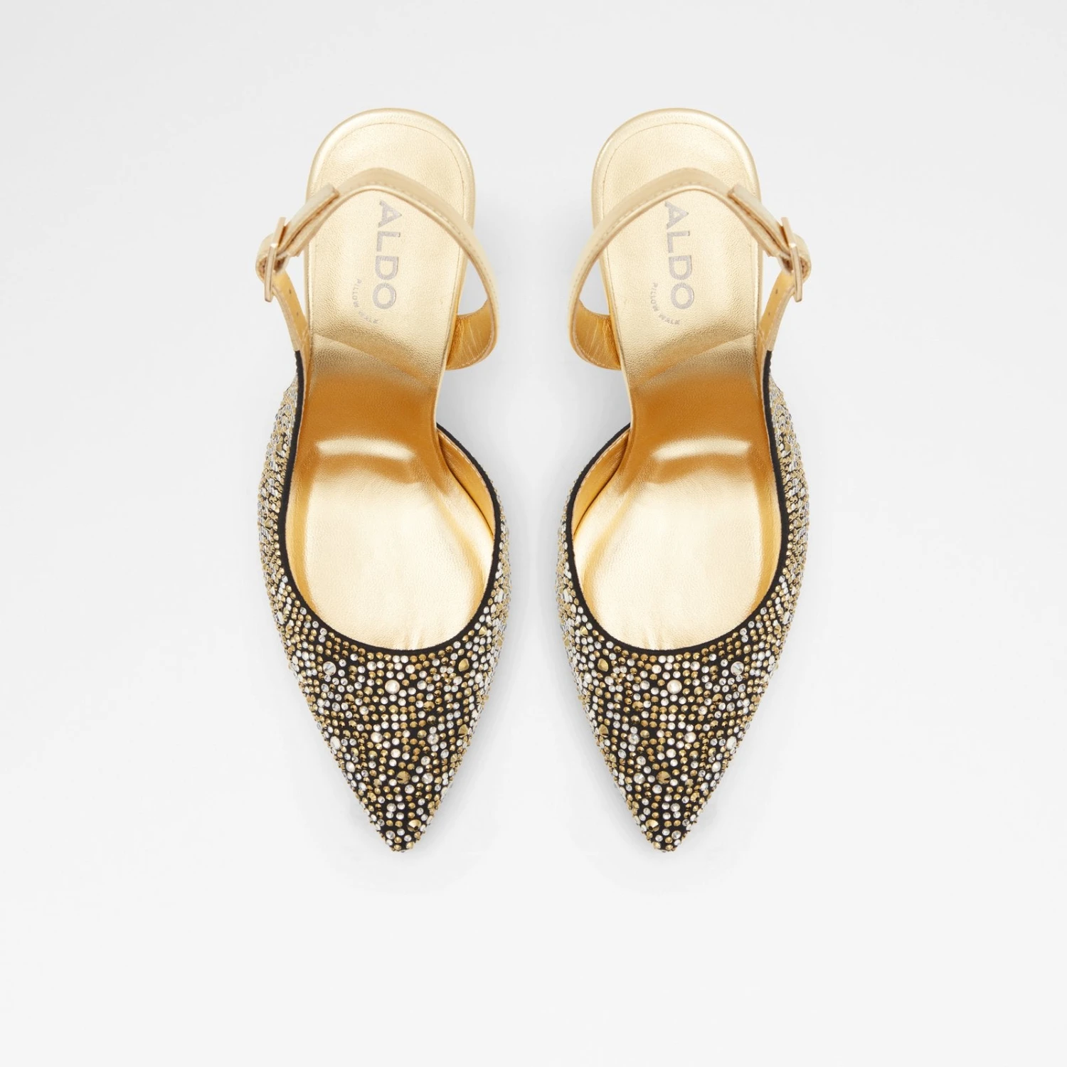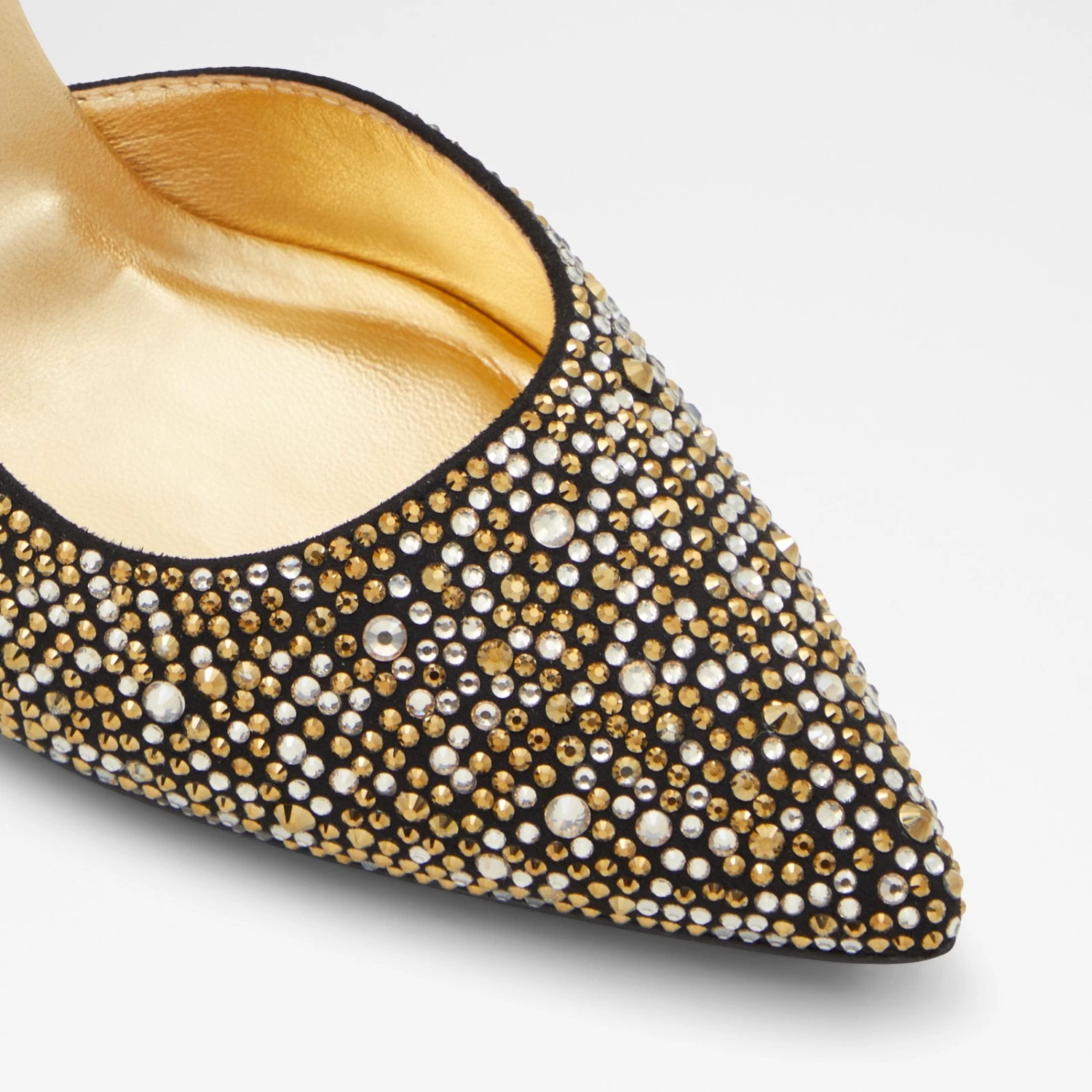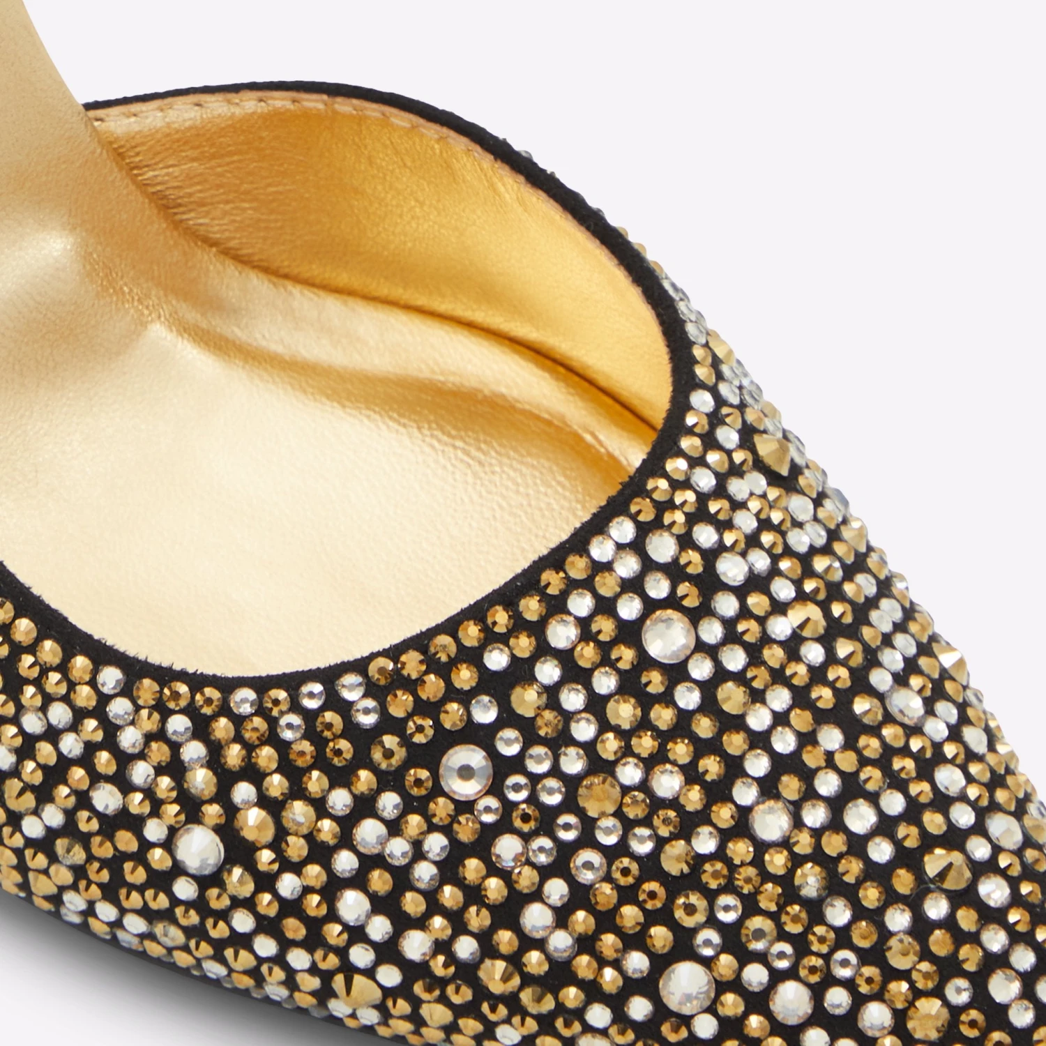 #Style notes *A standout watch strap design adorns these statement sling back heels with pointy toe, covered in rhinestones they are sure to be the star of the show. #Details * Sling back high heel * Peep toe * Slip-on * Colour Black #Materials *Upper: Synthetic *Main: Mixed materials *Sole: Rubber #Measurements *Heel height: 3.75 cm