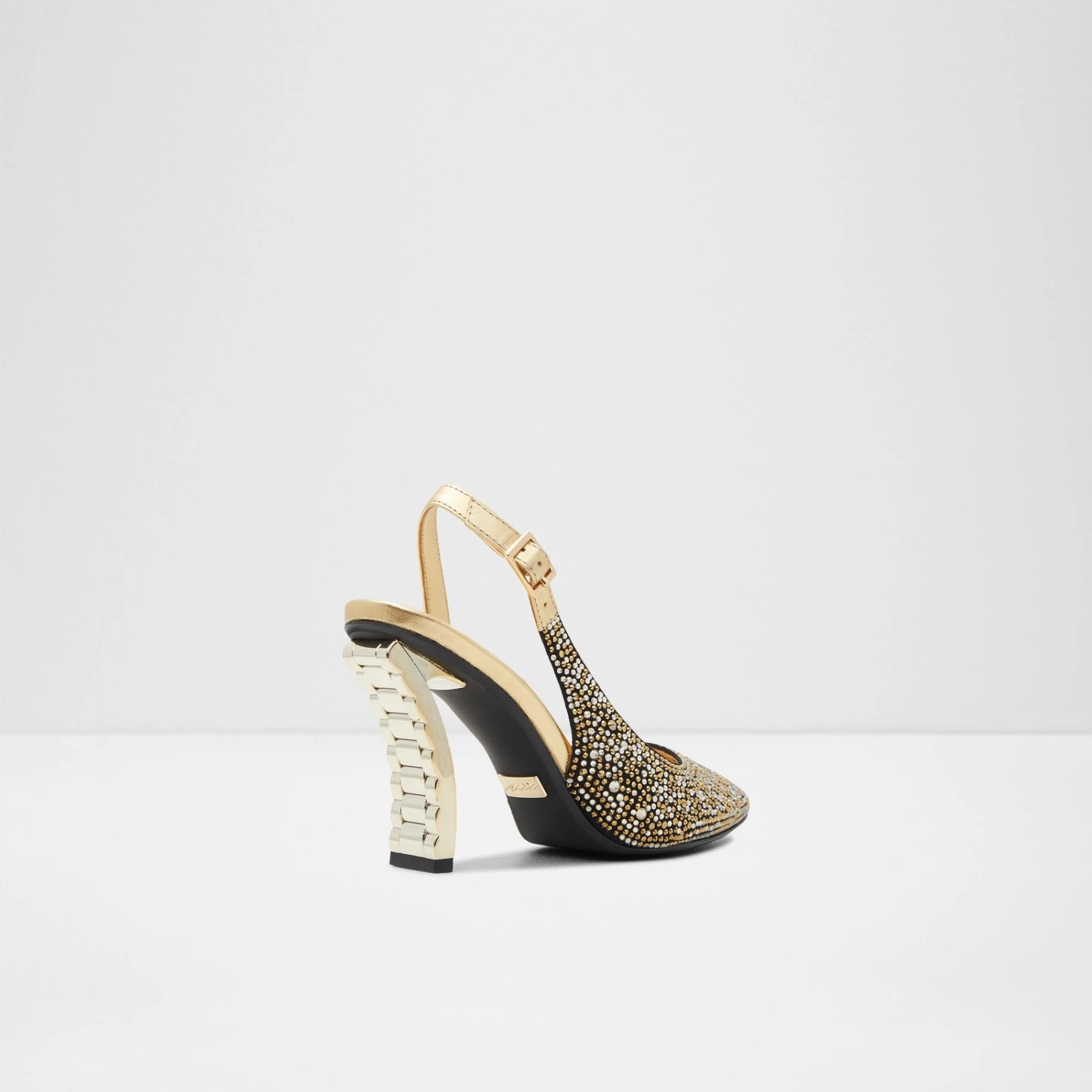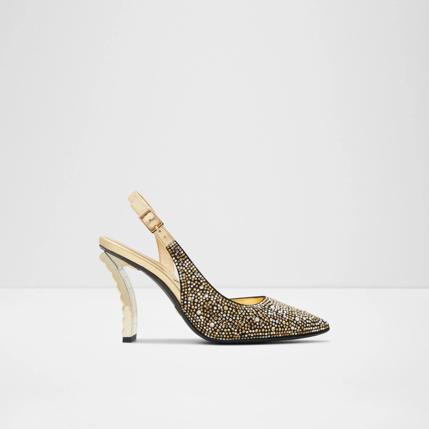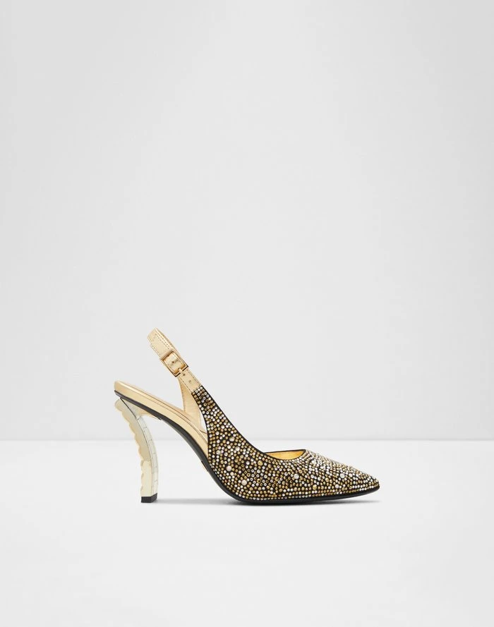 #Style notes *A standout watch strap design adorns these statement sling back heels with pointy toe, covered in rhinestones they are sure to be the star of the show. #Details * Sling back high heel * Peep toe * Slip-on * Colour Black #Materials *Upper: Synthetic *Main: Mixed materials *Sole: Rubber #Measurements *Heel height: 3.75 cm