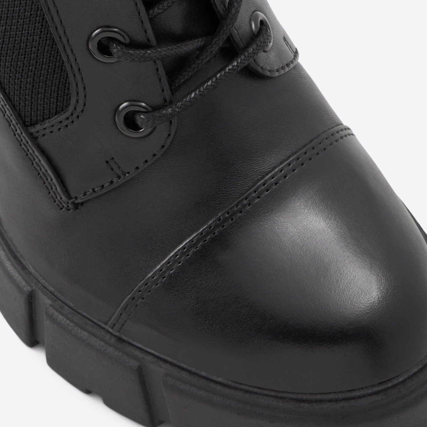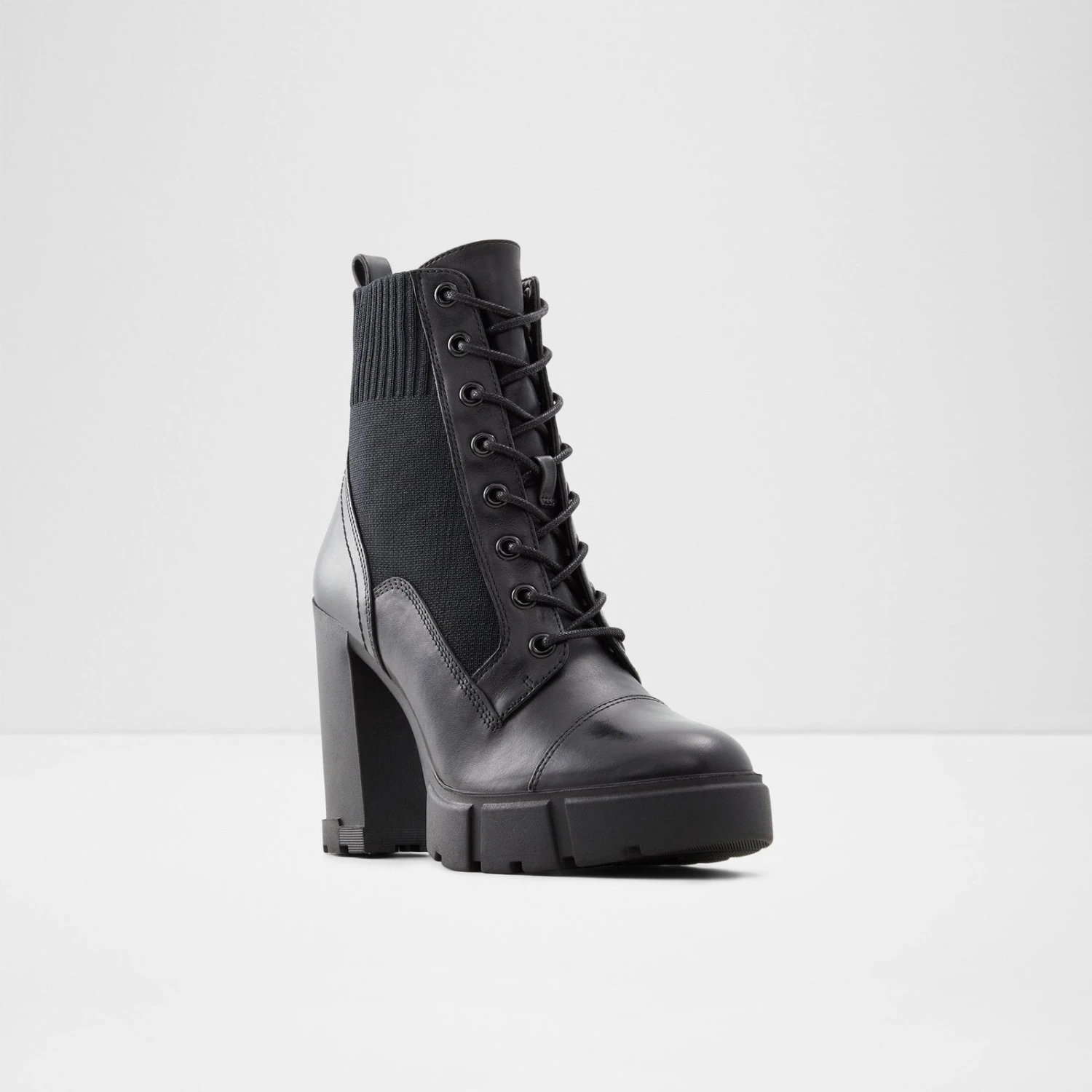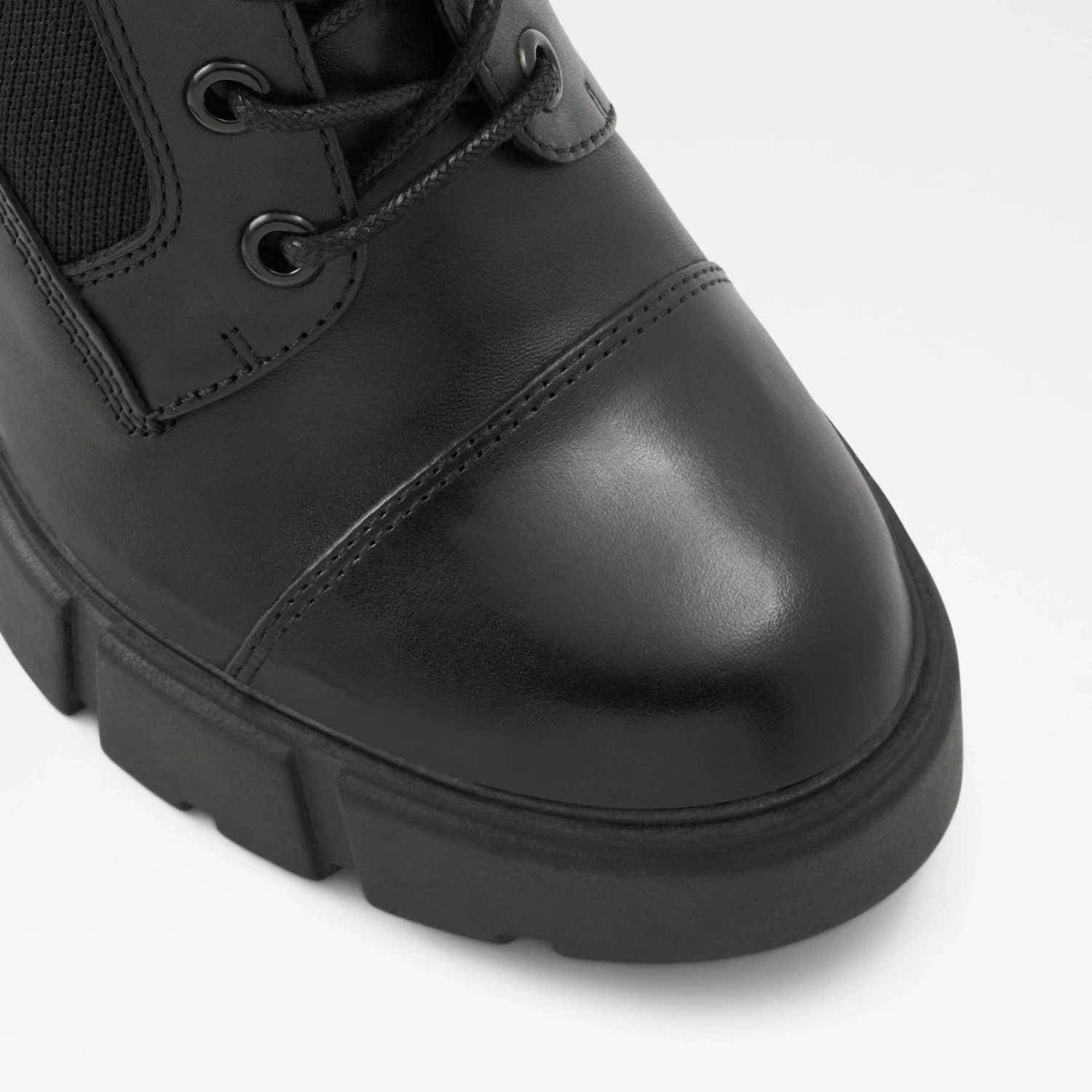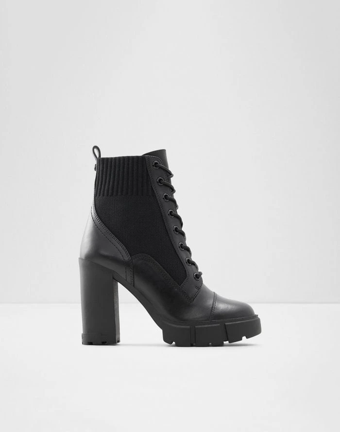 #Style notes *Show off your tough girl side with these bold combat ankle boots designed with trendy lug soles and mixed textures. #Details * Combat boots * Closed round toe * Lug sole * Laces closure * Colour Black #Materials *Upper: Textile *Main: Mixed materials #Measurements *Heel height: 4.0 cm *Shaft Height: 4.5 cm