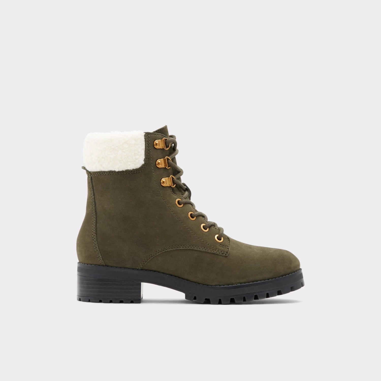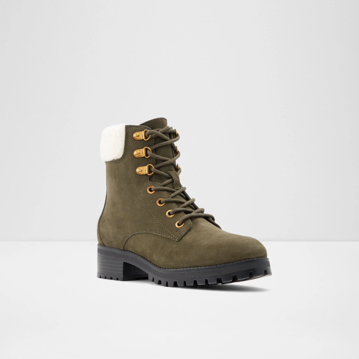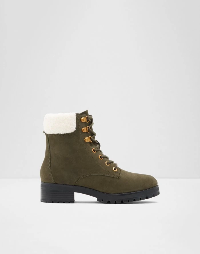 #Style notes *The lug sole is all the rage this year! Opt for this trendy leather ankle boot to complete your everyday looks. #Details * Lace up boot * Round toe * Lug sole * Laces closure * Colour Dark Green #Materials *Upper: Leather *Sole: Rubber #Measurements *Heel height: 4.0 cm *Shaft Height: 13.0 cm