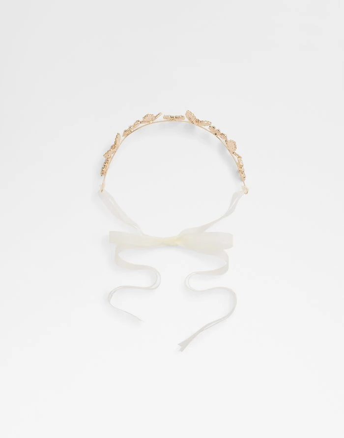 #Style notes *Hair piece with leaf & flower components & ribbon detail. #Details * Head piece * Colour Gold-Clear Multi