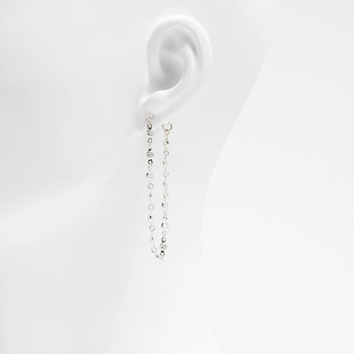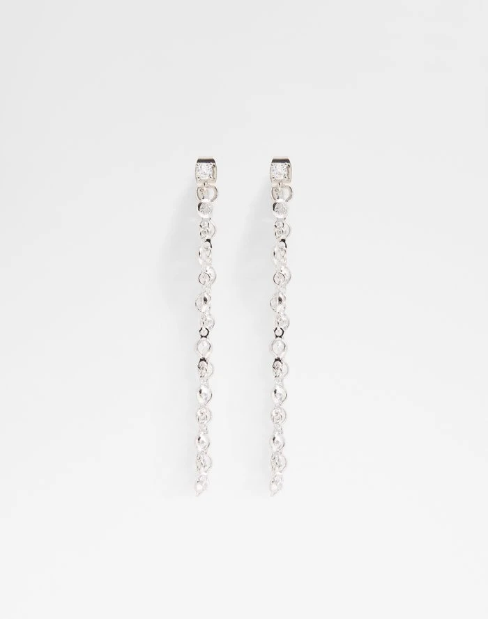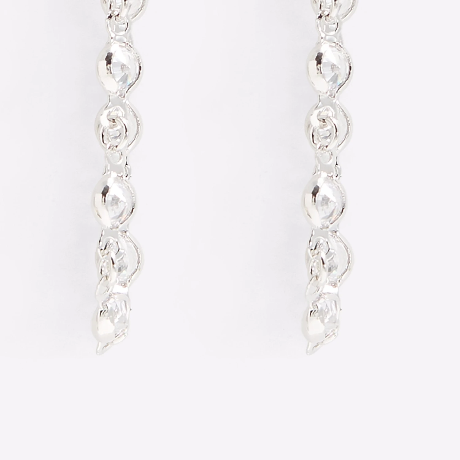 #Style notes *Exude Gatsby-era elegance with these long strand post-back earrings. Linear stainless steel metal and CZ rhinestone studs are best shown off with an upsweep hairstyle. #Details * Earrings * Colour Silver-Clear Multi