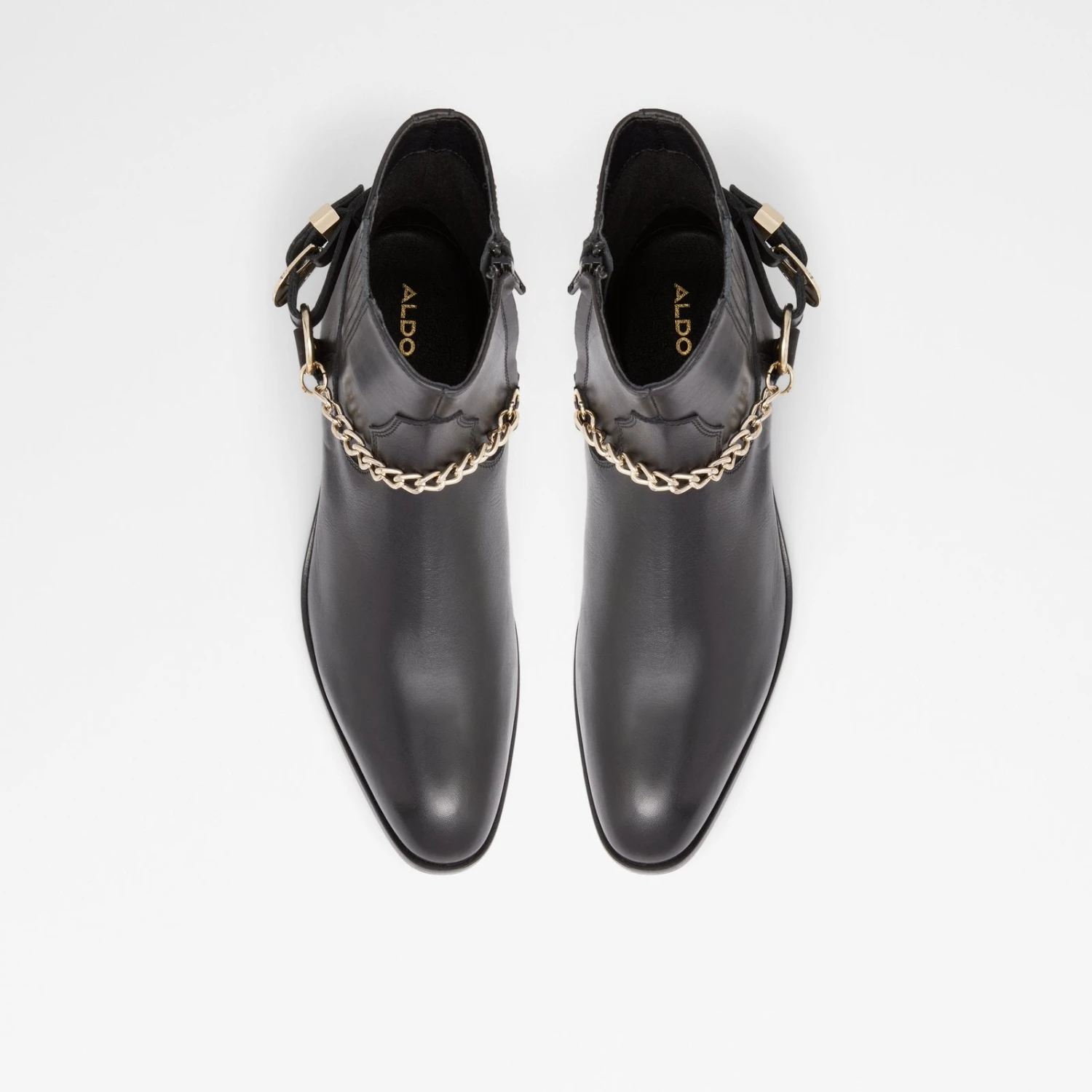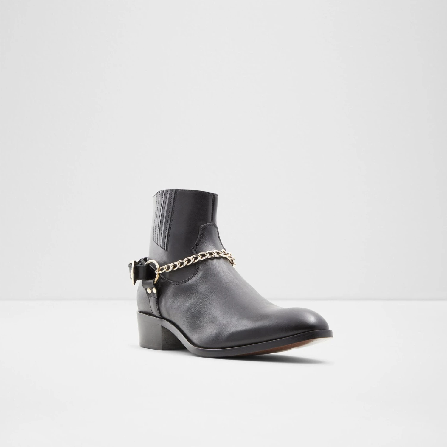 #Style notes *Trendier than ever, the classic chelsea boot gets a little style refresh thanks to the ultra sleek appeal of these decorative chains. #Details * Chelsea boot * Round toe * Zipper closure * Decorative chains * Decorative chains * Colour Black #Materials *Upper: Leather *Sole: Synthetic #Measurements *Heel height: 0.5 cm