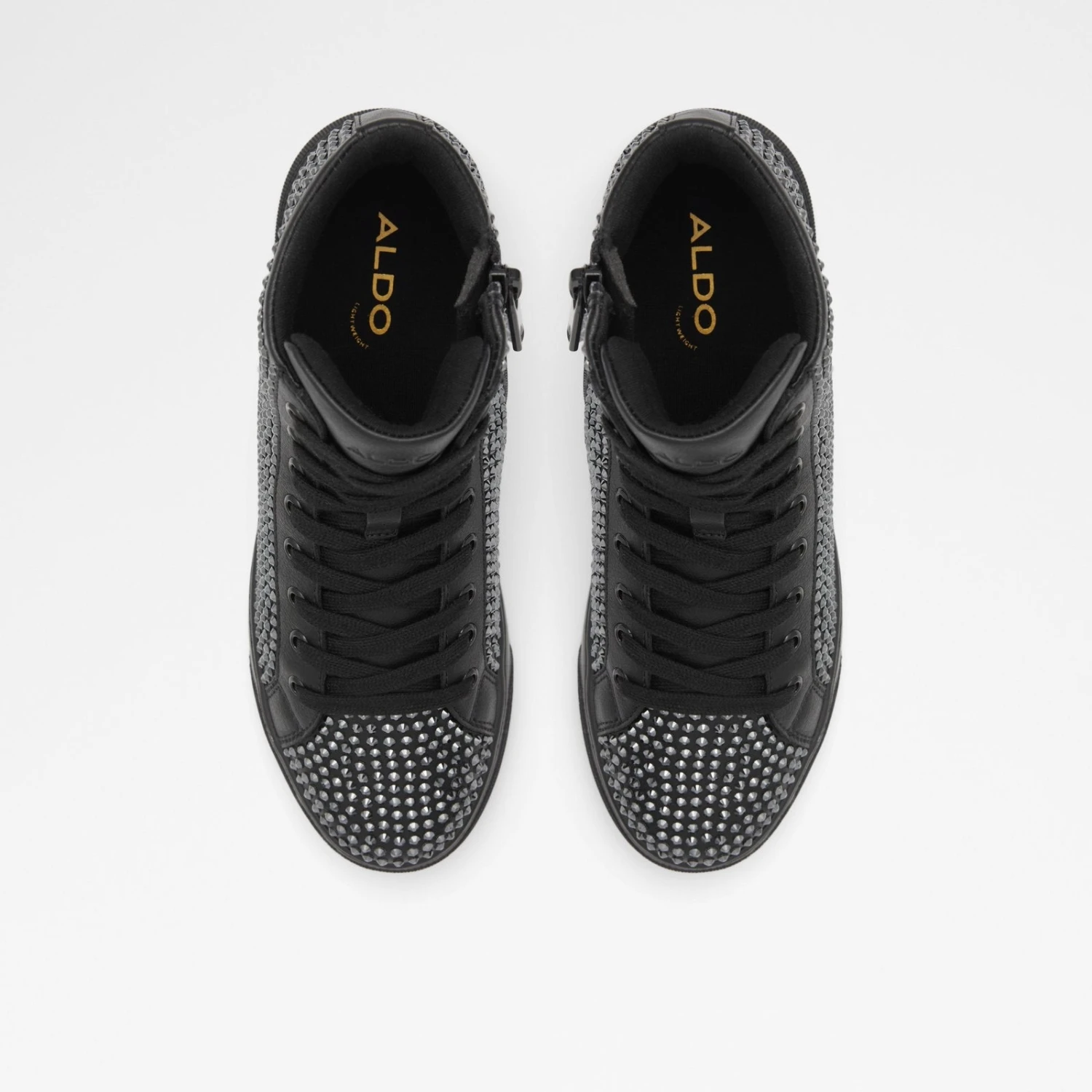 #Style notes *A fitting name for a shiny, rhinestone embellished high top sneaker that sparkles as you stride. #Details * Colour Black
