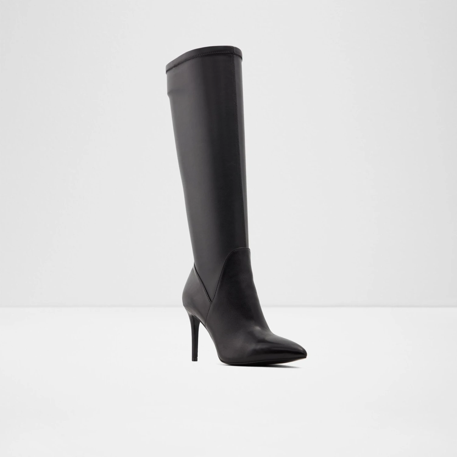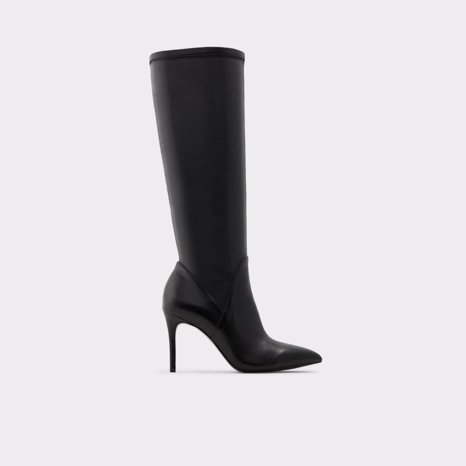 #Style notes *With a stretchy shaft, that fits similar to a stocking, these stiletto knee-high boots slip on with ease. #Details * Knee-high boot * Pointy toe * Stiletto heel * Zipper closure * Colour Black #Materials *Upper: Synthetic *Sole: Rubber #Measurements *Heel height: 9.0 cm *Shaft Height: 39.0 cm *Circumference: 34.0 cm