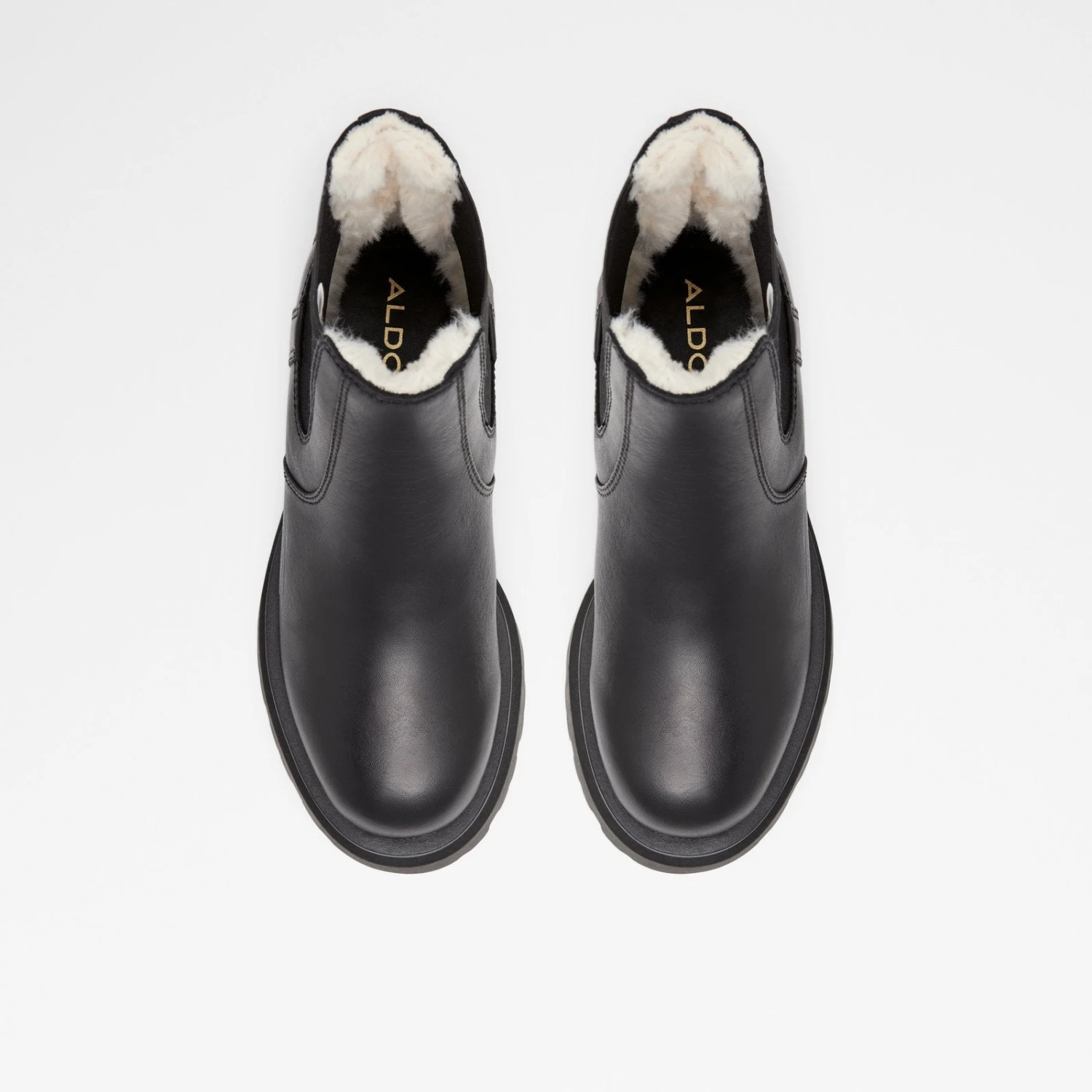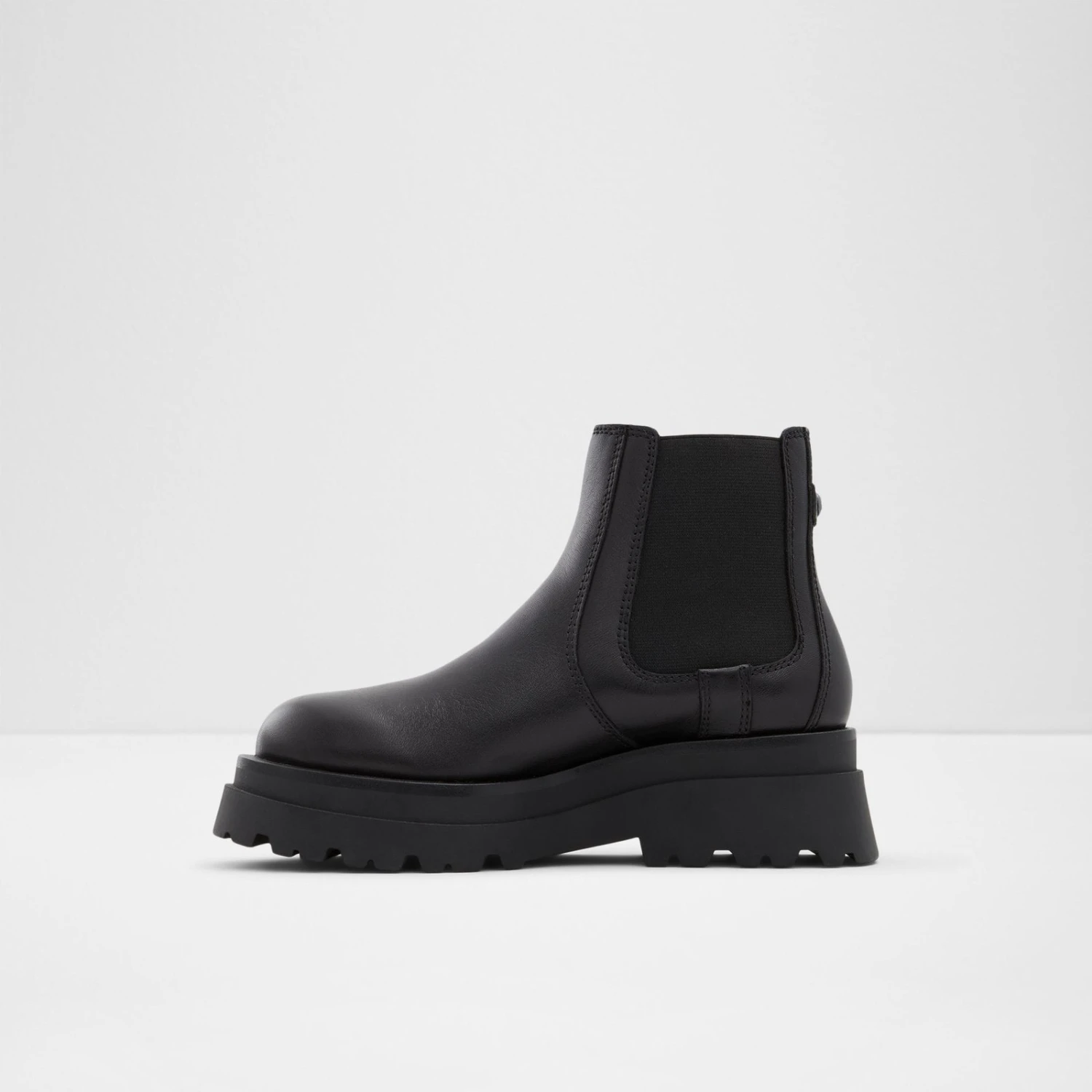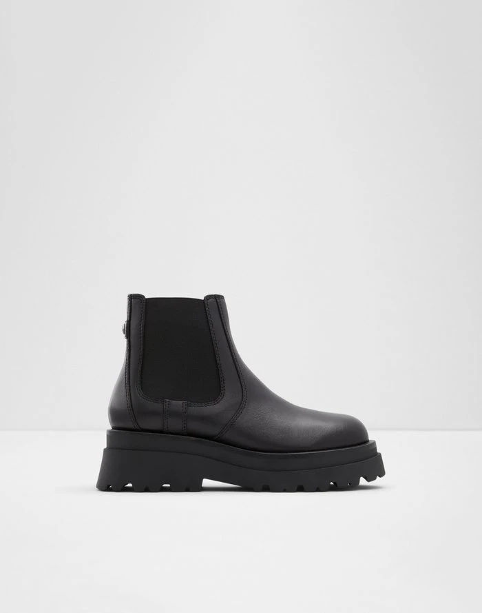#Style notes *Stomp on any terrain with these sturdy lug sole chelsea boots designed with water-resistant coating. The perfect cold weather booties for light rainy days! #Details * Chelsea boot * Closed round toe * Lug sole * Slip-on * WATER RESISTANT * WATER RESISTANT * Colour Black #Materials *Upper: Leather *Main: Smooth *Sole: Rubber #Measurements *Heel height: 2.25 cm *Shaft Height: 5.0 cm