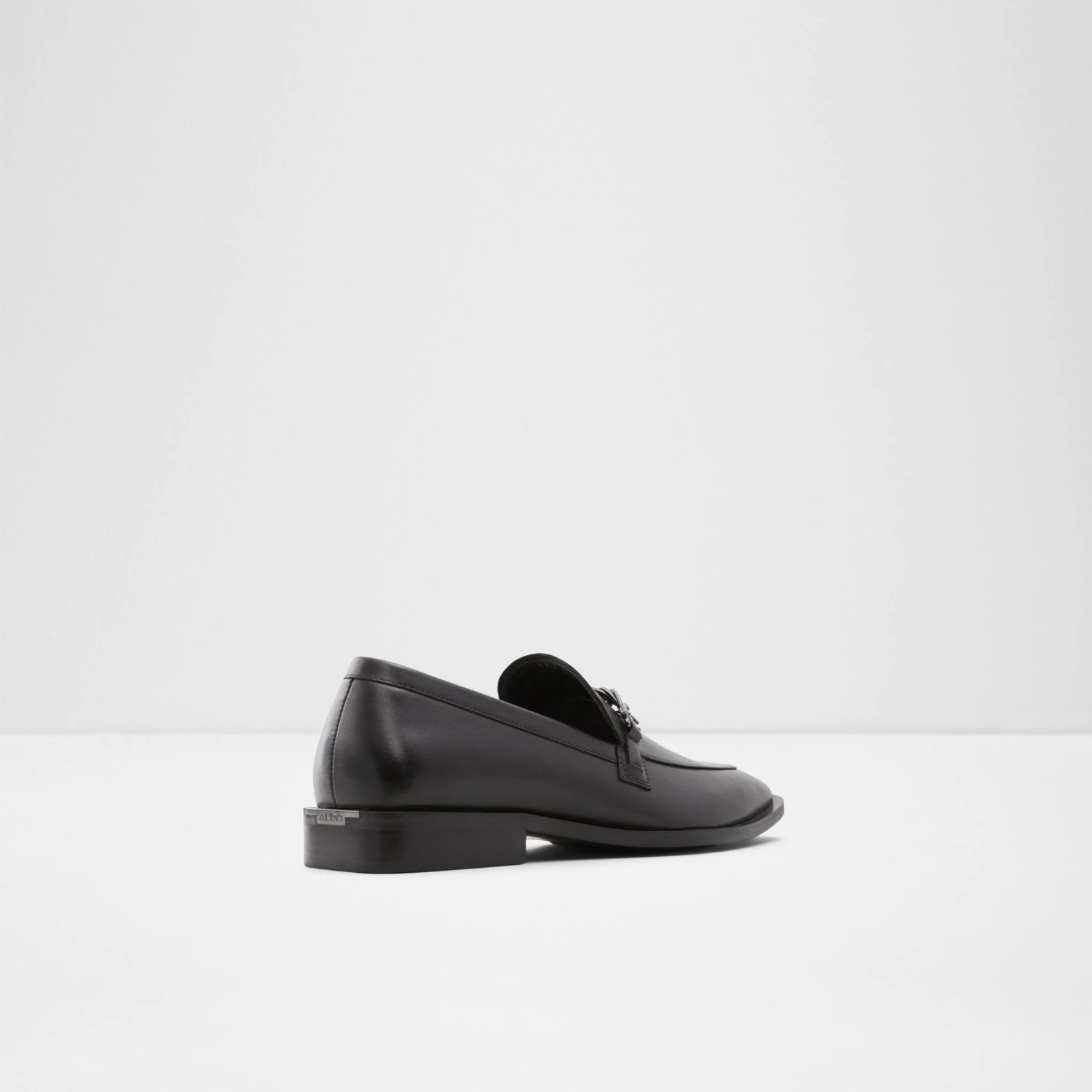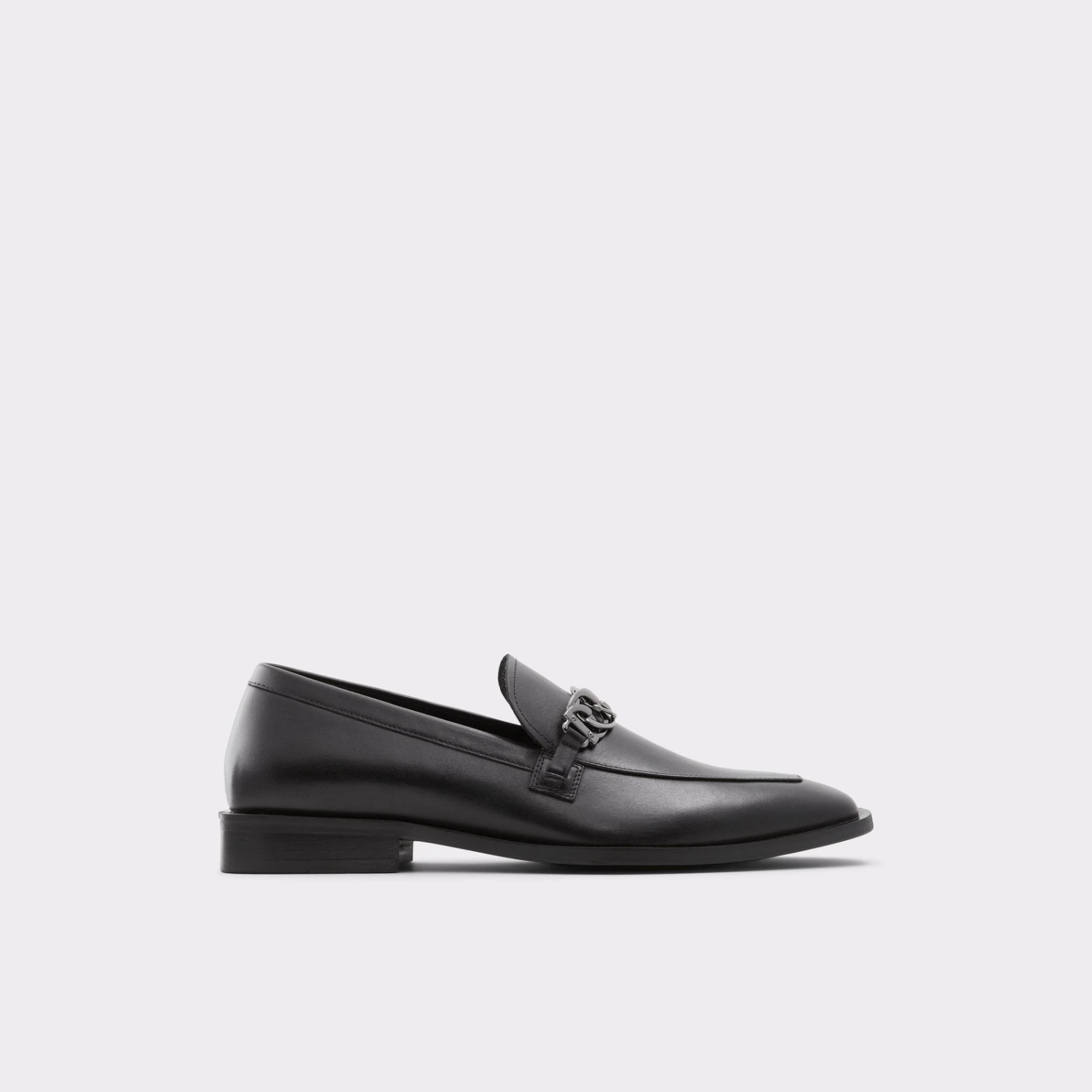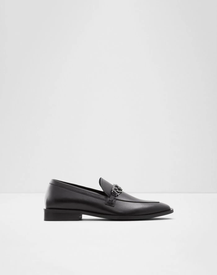 #Style Notes *A wardrobe must-have for smart dressers everywhere, these sleek leather loafers feature a tapered toe and luxe metal ornament. Style with your best suits for a serious win. #Details *Colour: Black *Heel Height: 1.25 In (3.18 Cm) *Heel Type: Flat Or No Heel #Materials *Main Material: Leather *Sole Material: Rubber