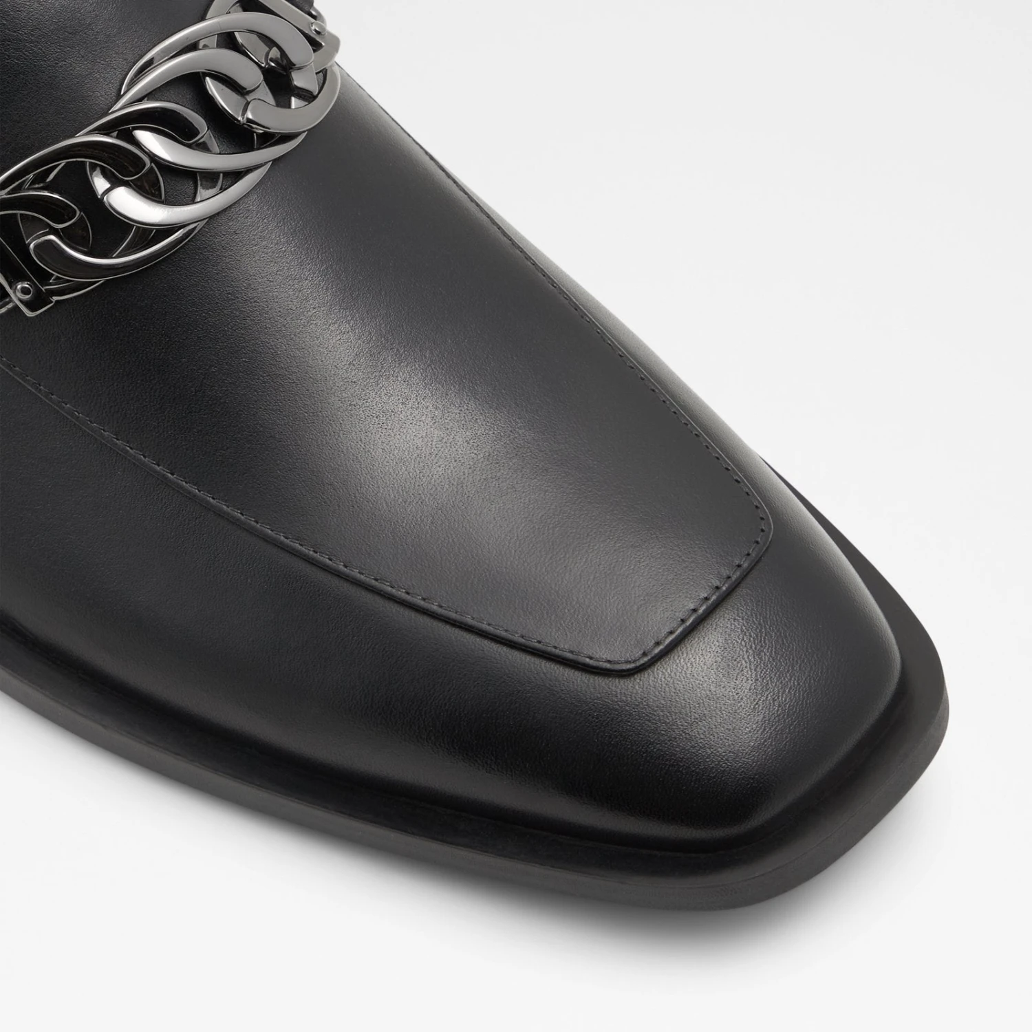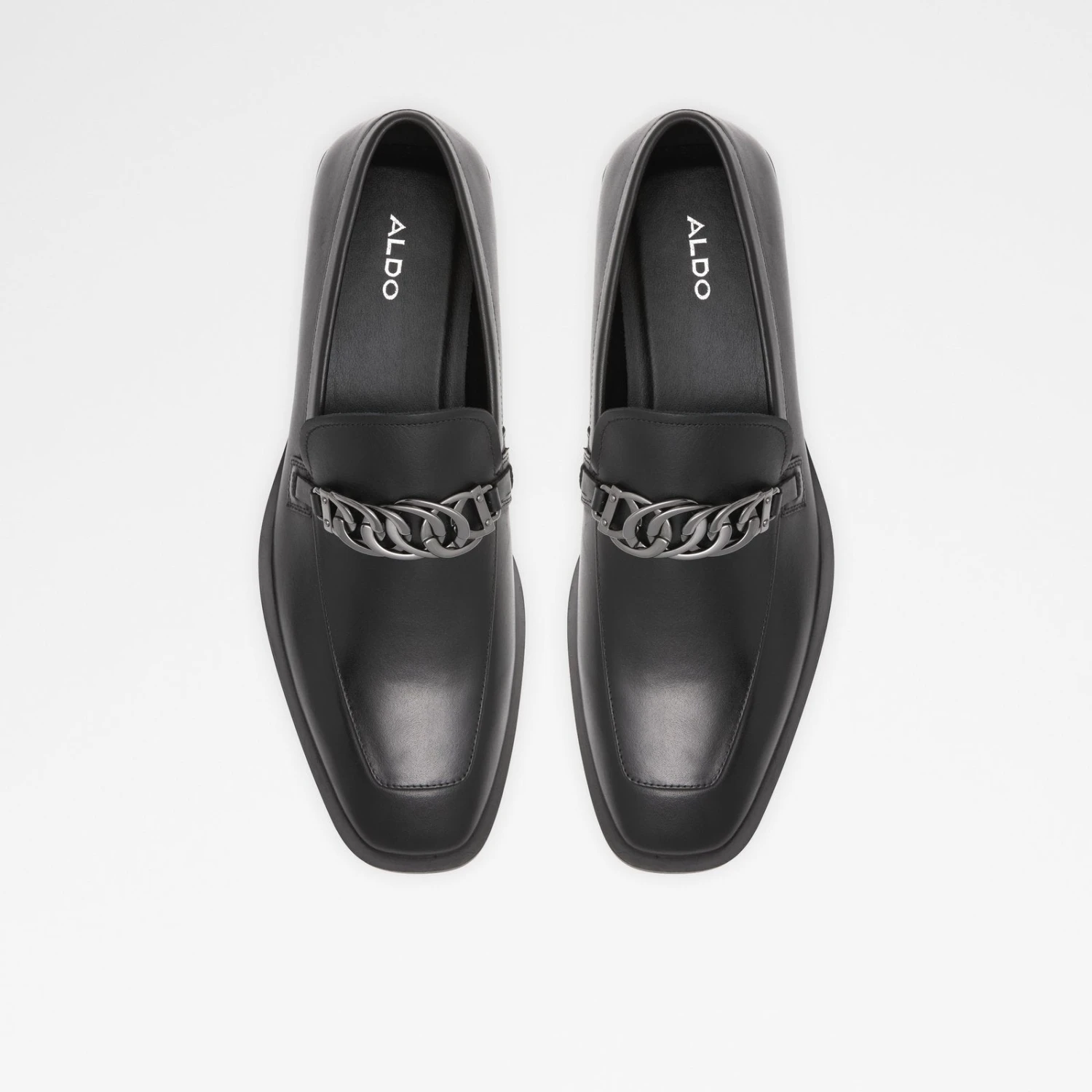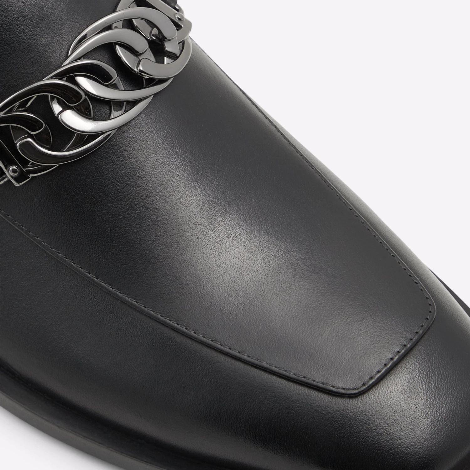 #Style Notes *A wardrobe must-have for smart dressers everywhere, these sleek leather loafers feature a tapered toe and luxe metal ornament. Style with your best suits for a serious win. #Details *Colour: Black *Heel Height: 1.25 In (3.18 Cm) *Heel Type: Flat Or No Heel #Materials *Main Material: Leather *Sole Material: Rubber