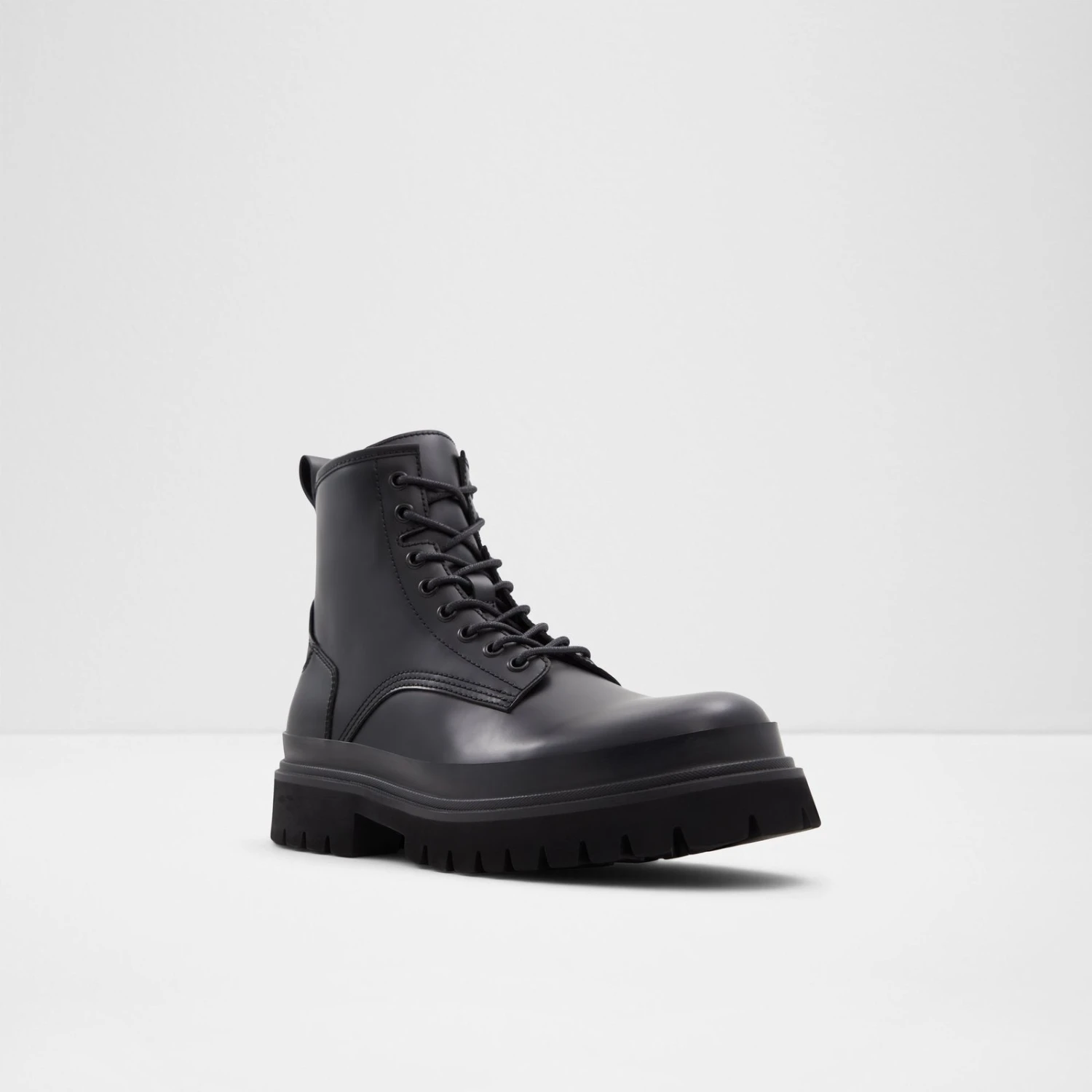 #Style notes *Make a stand with these military inspired boots with a classic lace up front for ease of wear. #Details * Lace-up boot * Closed round toe * Lug sole * Laces closure * Colour Black #Materials *Upper: Leather *Main: Smooth *Sole: Algae EVA Foam