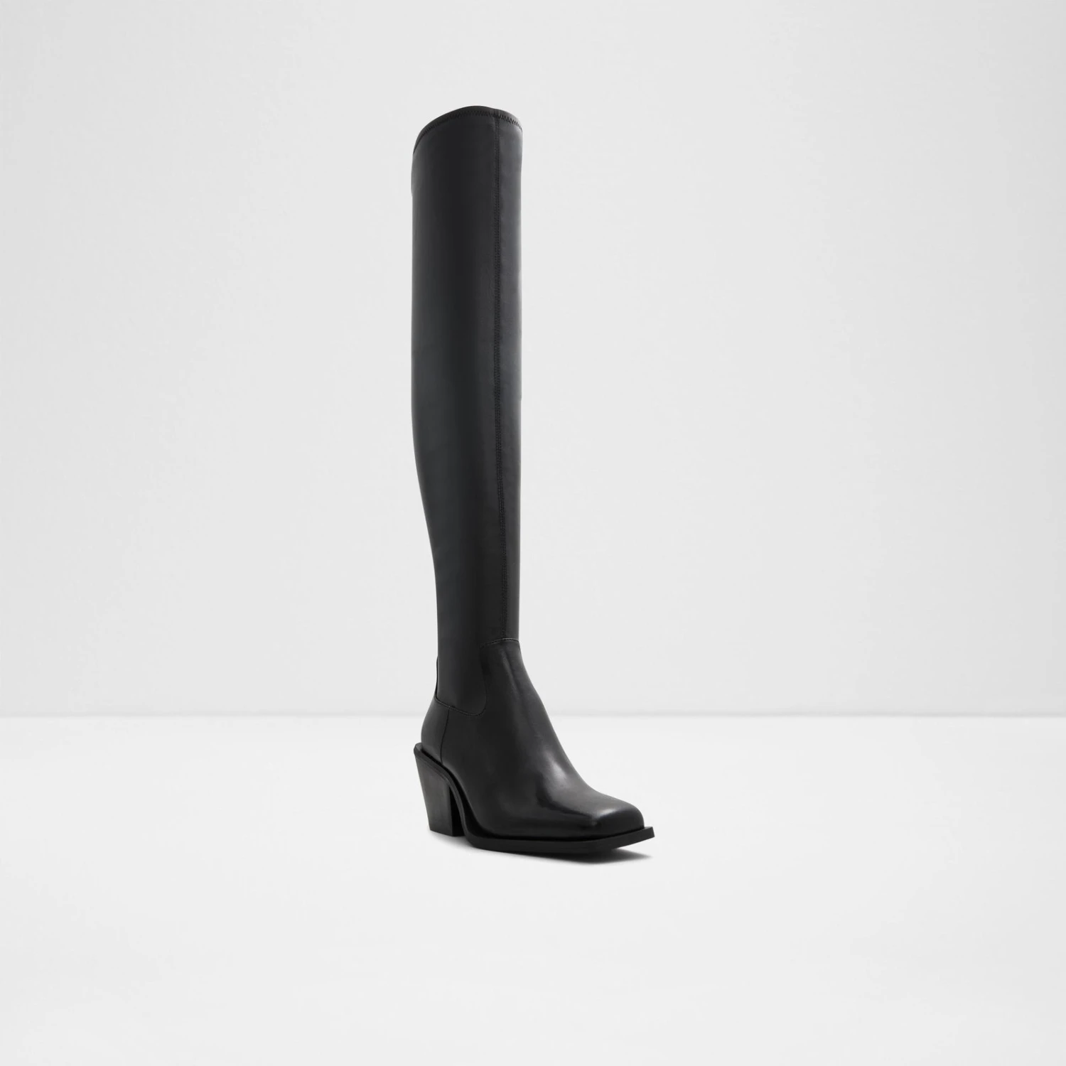 #Style notes *A slanted block heel and modern square toe add structural balance to these outfit-making over-the-knee boots. #Details * Over-the-knee western boot * Closed square toe * Zipper closure * Colour Black #Materials *Upper: Leather *Main: Smooth *Sole: Rubber #Measurements *Heel height: 2.75 cm *Shaft Height: 21.5 cm *Circumference: 10.0 cm