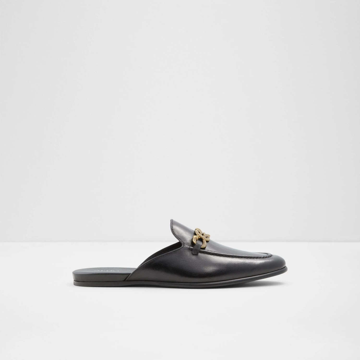 #Style notes *Tailored suits and tapered trousers pair handsomely with these chic smooth leather loafers. With everything from metal accents to a modern almond toe, these dress shoes meet all your formal wear needs. #Details * Mule loafer * Almond toe * Slip on * Metal ornament * Metal ornament * Colour Black #Materials *Upper: Leather *Sole: Rubber