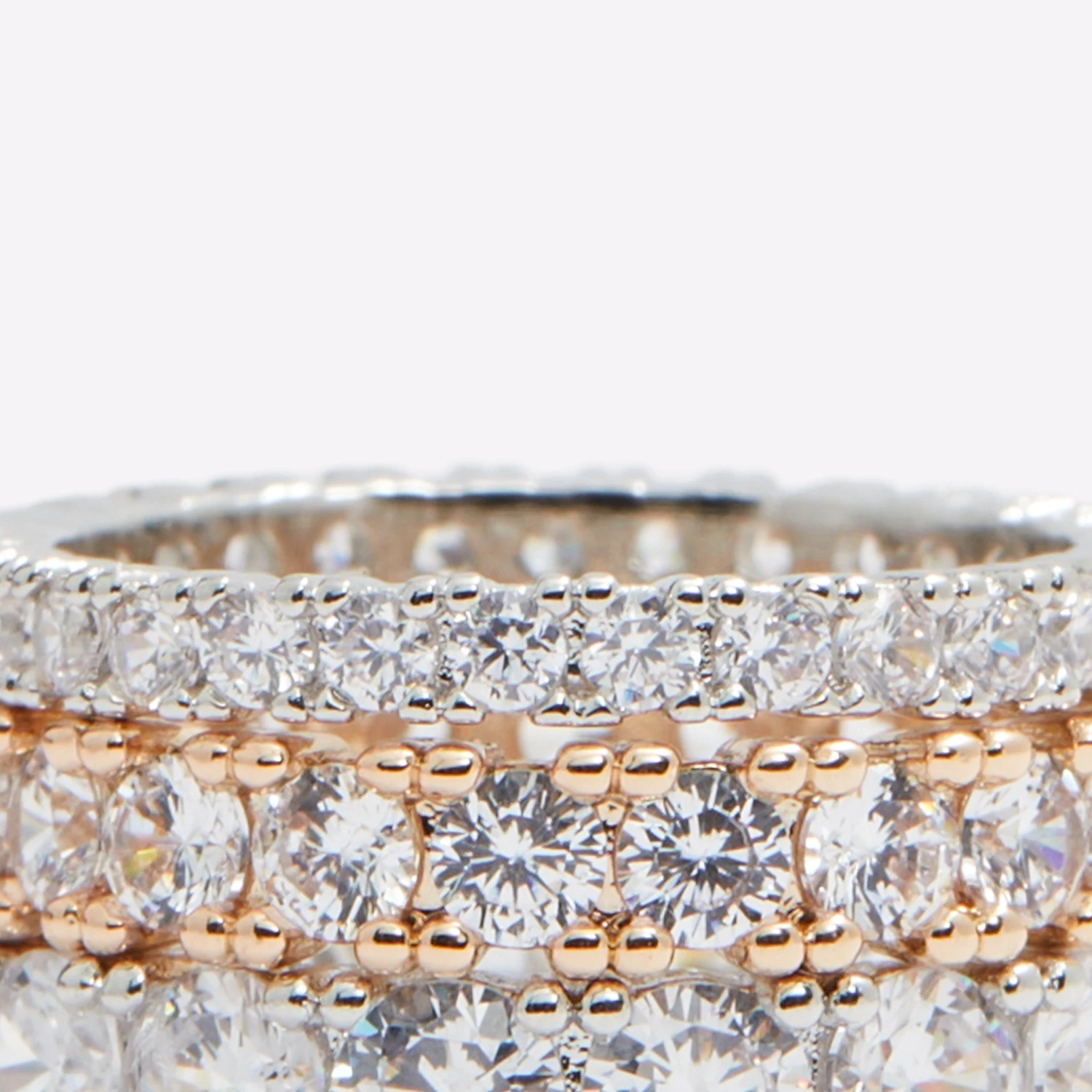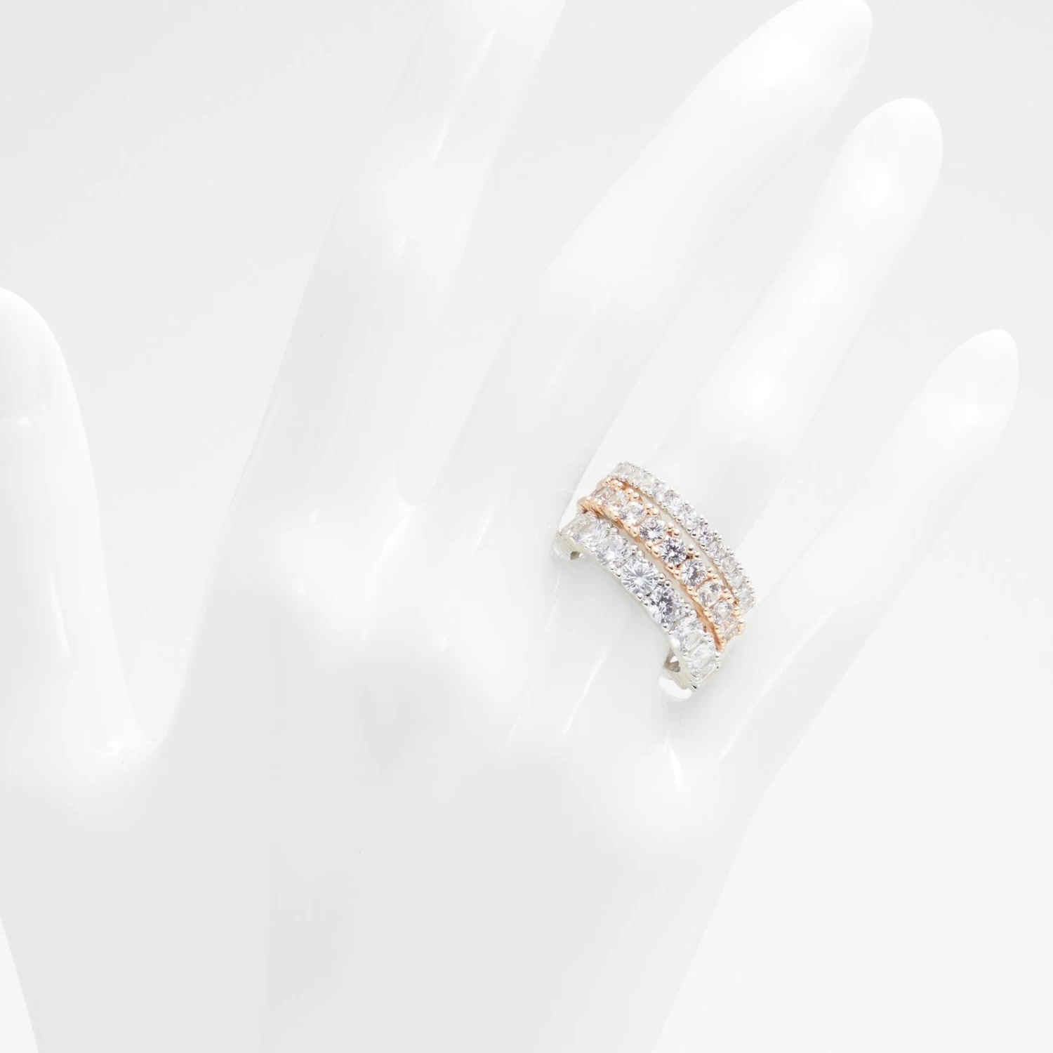 #Style Notes *Razzle-dazzle your friends with this over-the-top special occasion ring. Gold- and silver-tone settings are studded with three rows of sizeable clear crystals for a dramatic, sparkling effect. #Details *Colour: Metallic Multi
