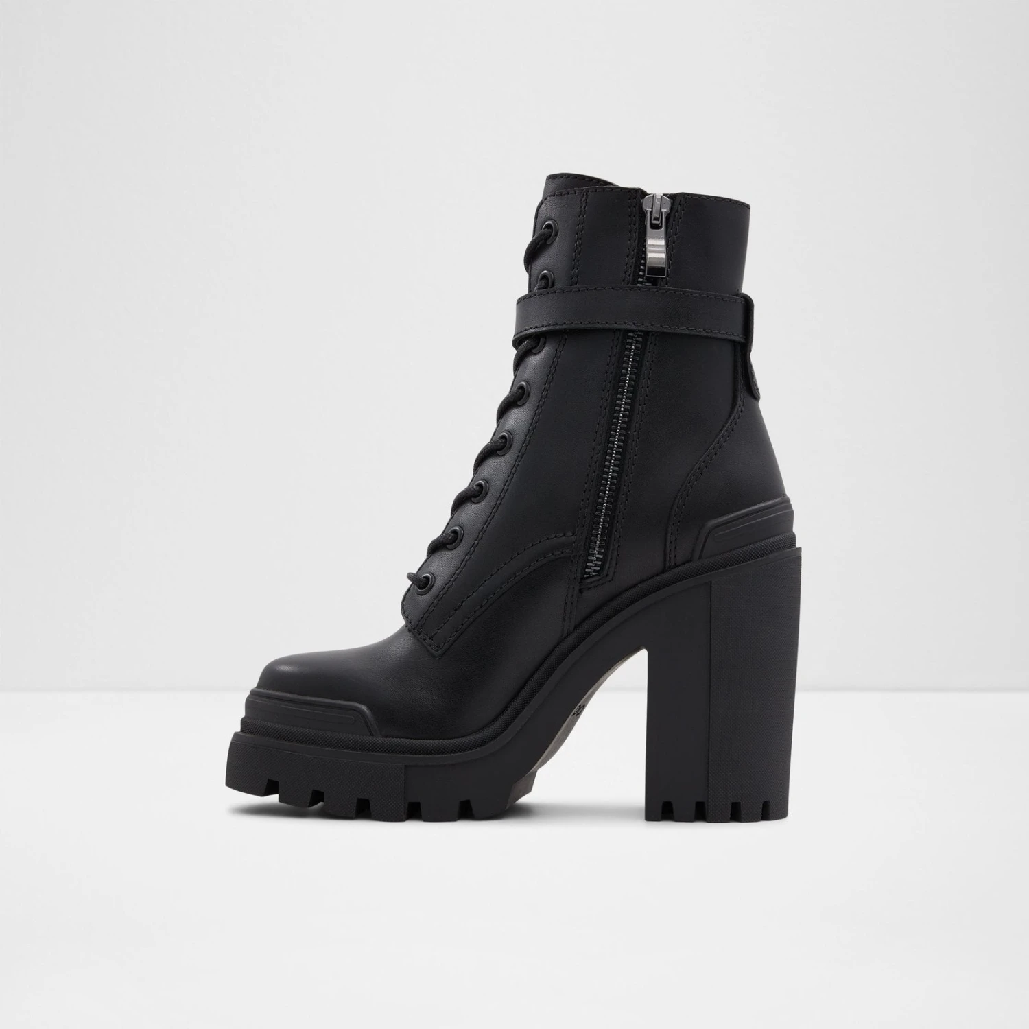 #Style notes *Give your ‘fits an extra lift with these snap-worthy heeled combat boots designed trend-right lug soles. #Details * Combat boots * Closed round toe * Lug sole * Zipper closure * Metal ornament * Colour Black #Materials *Upper: Leather *Main: Smooth *Sole: Rubber #Measurements *Heel height: 4.25 cm *Platform height: 1.0 cm *Shaft Height: 5.0 cm