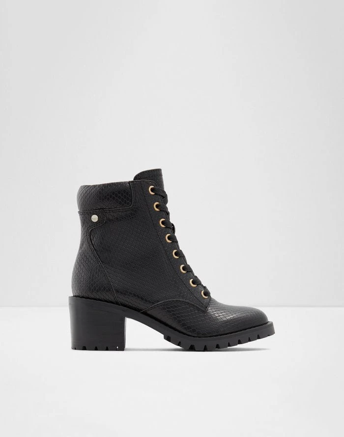 #Style notes *Lead the way in these trailblazing lace-up boots with a classic round toe and chunky lug soles. Tried and true, these ankle boots were made to move with you. #Details * Lace up boot * Round toe * Block heel * Zipper closure * Colour Black #Materials *Upper: Synthetic *Sole: Rubber #Measurements *Heel height: 6.0 cm *Shaft Height: 13.0 cm