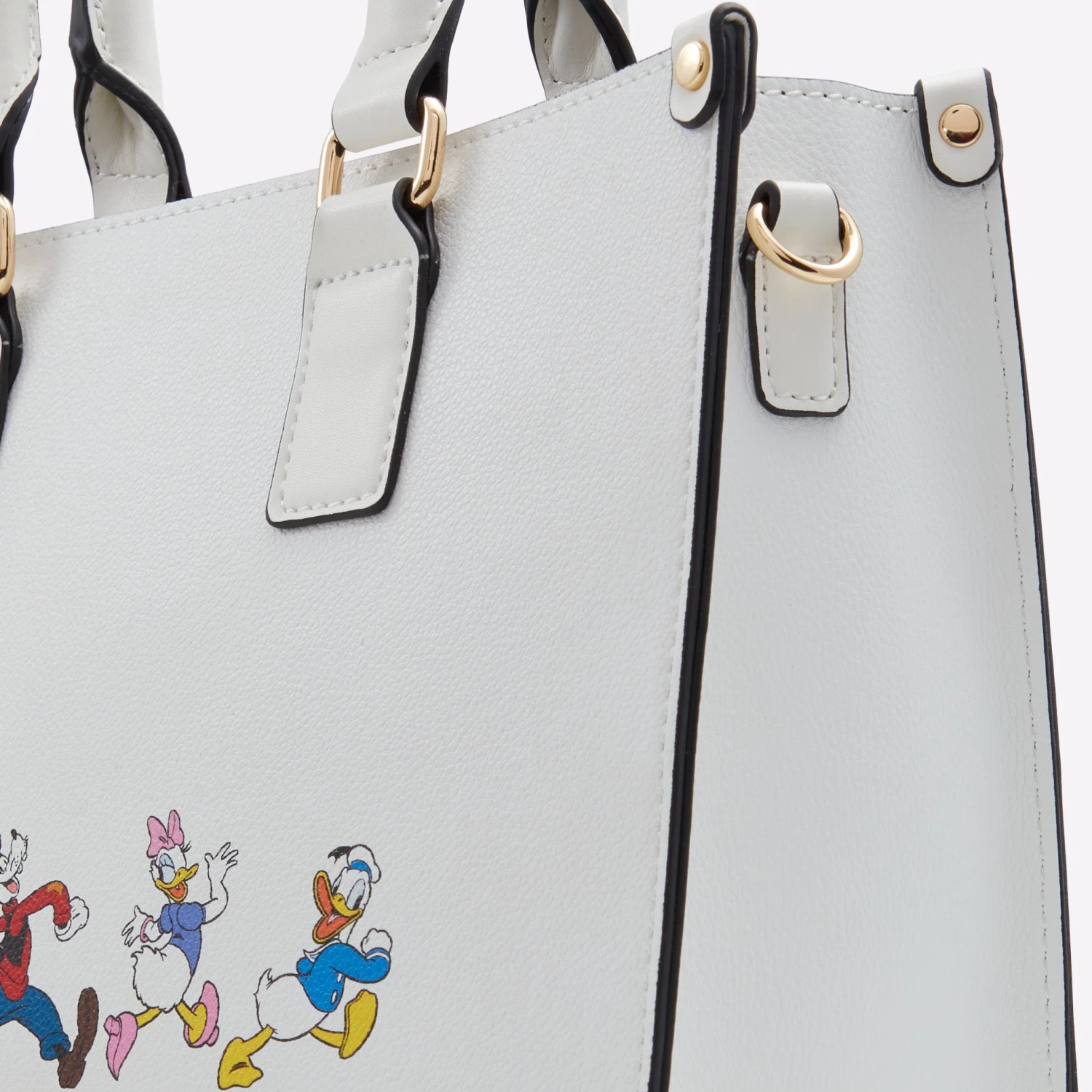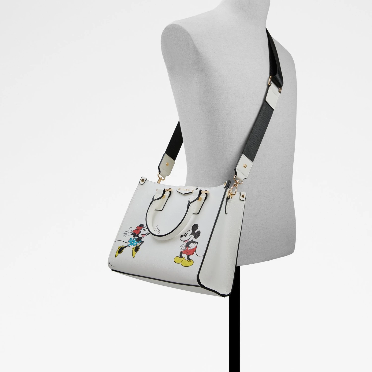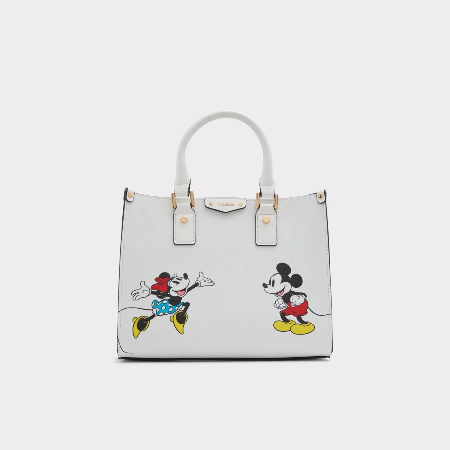 #Style notes * Disney x ALDO This classic handbag style features Mickey Mouse and Minnie Mouse and an inner pouch with a playful contrasting custom print—for all your essentials. With two different straps, and multiple ways to style—the options are endless. #Details * Satchel bag * Zipper closure * Removable crossbody bag * Interior compartment * Removable adjustable crossbody strap * Colour White #Materials *Upper: Synthetic *Main: Smooth #Measurements *Handle Drop Length: 5.0 inches *Strap Drop Length: 23.0 inches